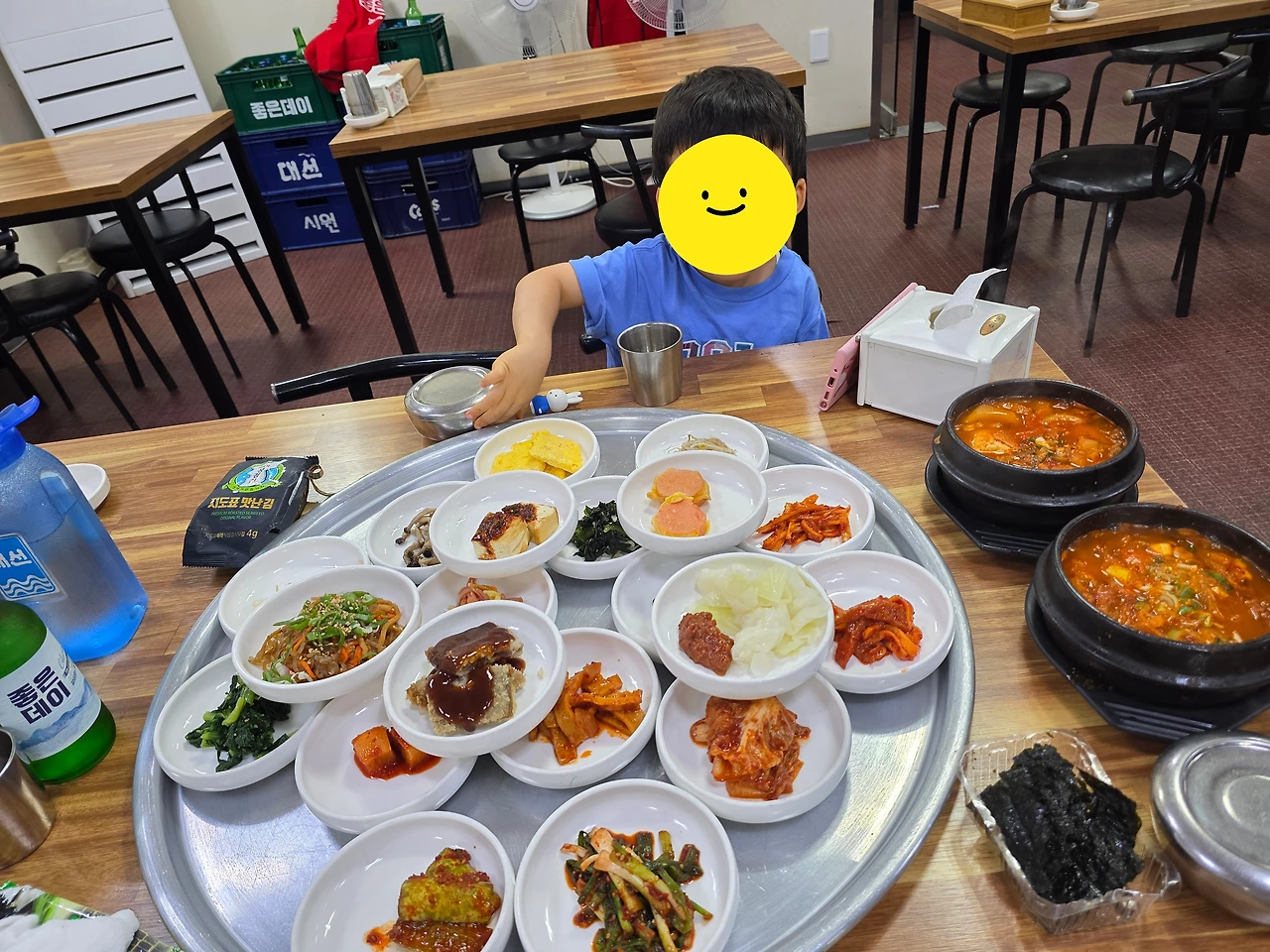 아내는 근처에서 잠시 지인을 만나러 갔습니다. 그래서 오늘 저녁은, 저와 아들의 단독 외식입니다. 그러니까 이건… 저희 부자(父子)의 첫 번째 백반 회동입니다.