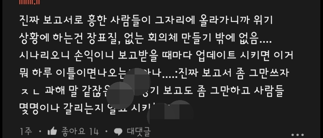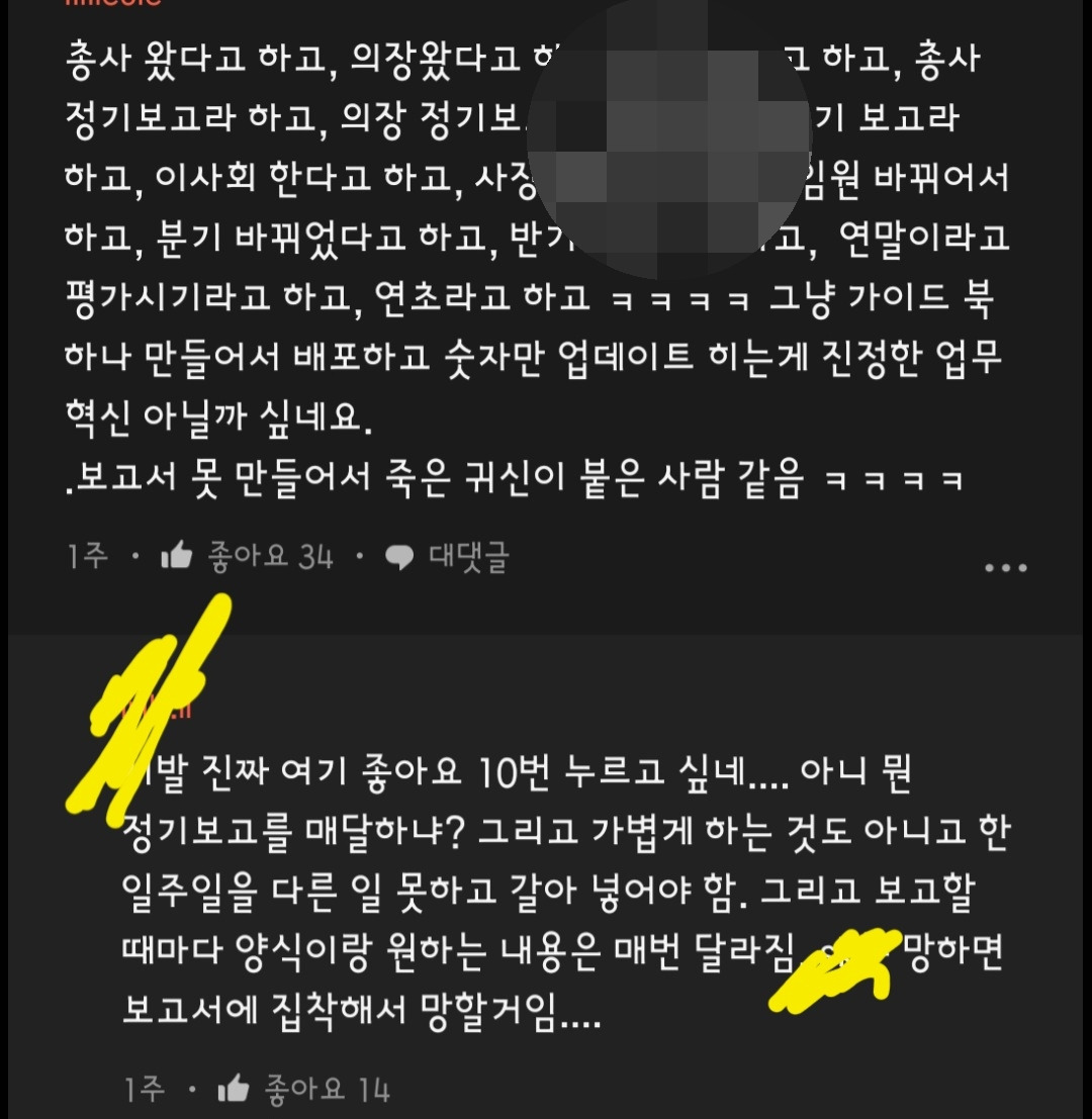 <전직장의 블라인드 게시판에서 보고 문화를 성토하며 쓴 글. 그들의 빡침이 생생하게 느껴진다>