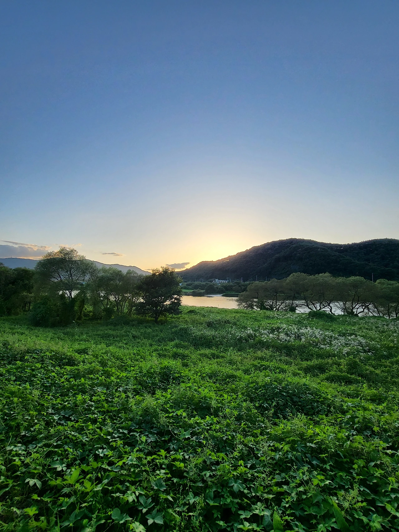 이렇게 자란 아이에게 이제 강둑길 산책쯤은 그야말로 식은 죽 먹기다. 그래서 하루는 저녁 무렵, 손을 잡고 천천히 강둑길을 걸었다. 산 아래 강은 말없이 흘러가고 있었고, 가을 초입의 저녁바람은 서늘하되 상쾌했다. 나는 재은이에게 이렇게 말했다.