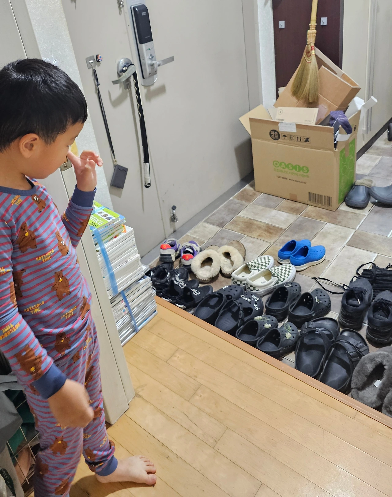 그런데 며칠 지나지 않아 아내가 카카오톡으로 사진 한 장을 보내왔다. 현관 바닥에 놓인 가족의 신발들이 가지런히 정리되어 있는 모습이었고, 그 옆에는 유치원에 다니는 손자가 만족스러운 표정을 지은 채 서 있었다. 사진 밑에는 이렇게 적혀 있었다.