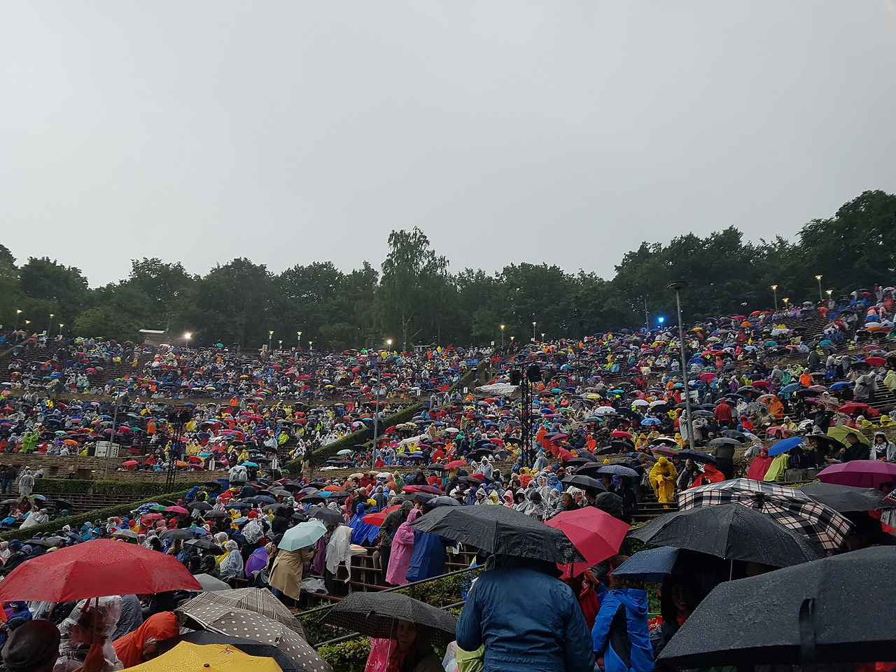 공연 2시간 전, 비가 엄청나게 내림에도 꿋꿋하게 자리를 지키는 관객들