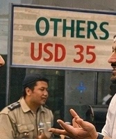 오랜 시간이 지나서 "Others : USD35"을 가리키며 여기 없는 국가는 $35 내라고 한다.