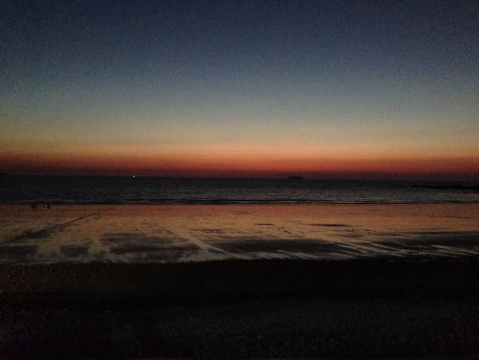 하고 카메라를 건네며 내쪽에서 지금 수평선 밑으로 빨려가는 태양을 찍어달라고 손가락 끝으로 가리켰다. 나는 1회용 카메라를 써본적이 오래됐지만 해가 정말 빠르게 저물고 있어 파인더에 보이는 대로 우선 셔터를 누르고 다시 카메라를 건넸다. 핸드폰으로 다시 찍을까.