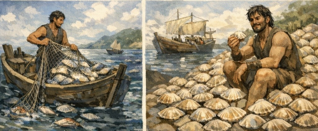 다시 말해 핵심은 조개를 버는 것이 아니다. 내가 할 수 있는 것을 파악하고 그 여분을 갖는 것에 있다.