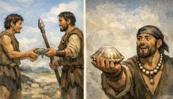 물고기를 잡는 사람도, 창을 만드는 사람도, 조개를 만든 사람도 결국 같은 경제구조 안에 있었다.