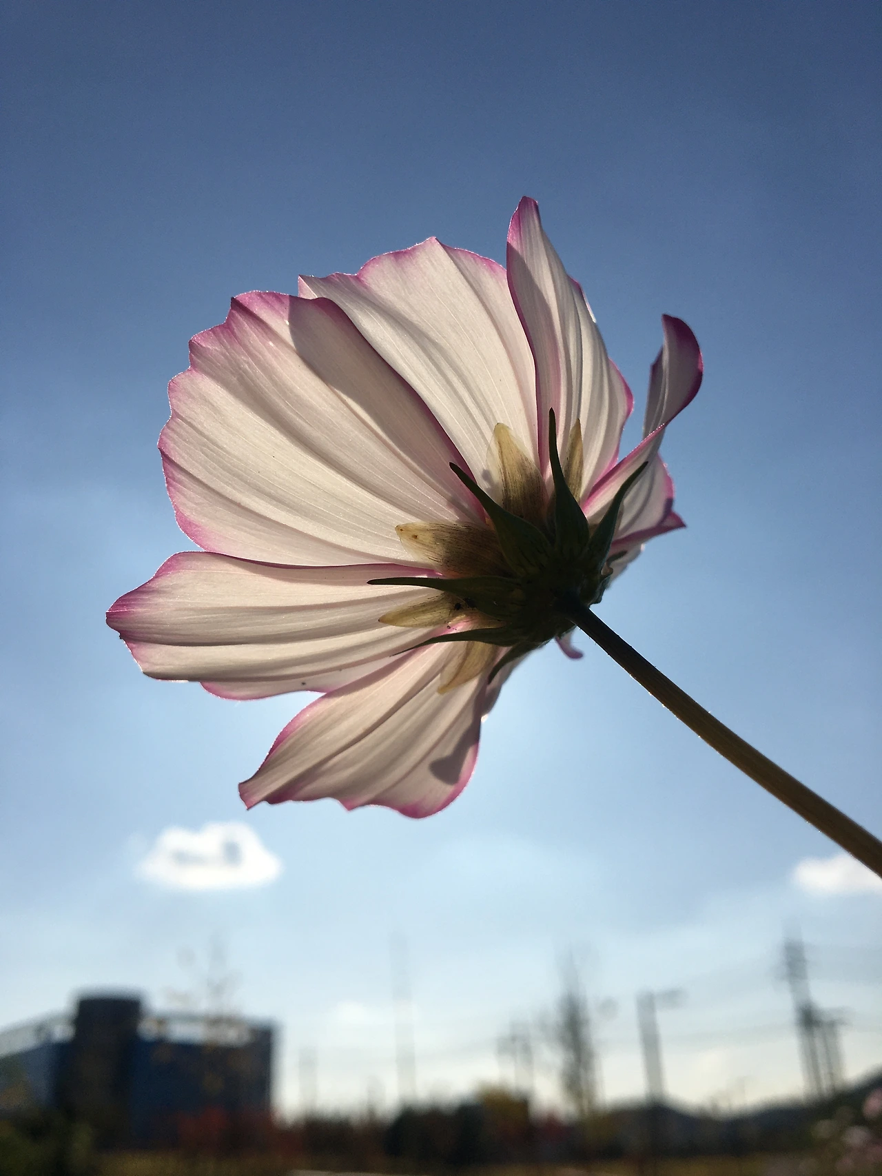 위에서 보는 것도 예쁘지만 아래에서 하늘 바탕으로 두둥실 떠 있는 코스모스를 보는 것이 더욱 아름답다. 진정하게 사랑한다면 남이 보면 민망할 정도로 화석 몸을 비틀어 헤집고 들어가 바라볼 줄 알아야 한다.