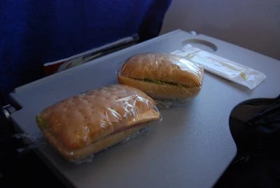 짧은 거리다보니 기내식은 없고 상당히 부실해보이지만, 짭짤해서 맛있는 그런 샌드위치가 나왔다. 에어 차이나는 커피를 따로 시켜야 한다고 들었기 때문에, 커피를 따로 이야기 한후, 커피와 함께 먹으니 생각보다 먹을만 했다.