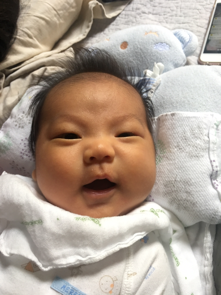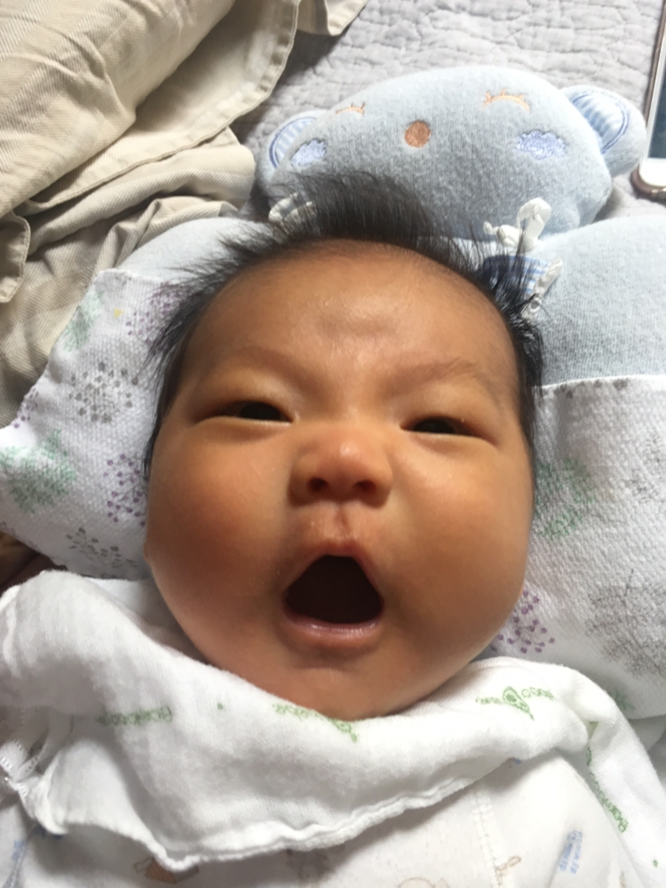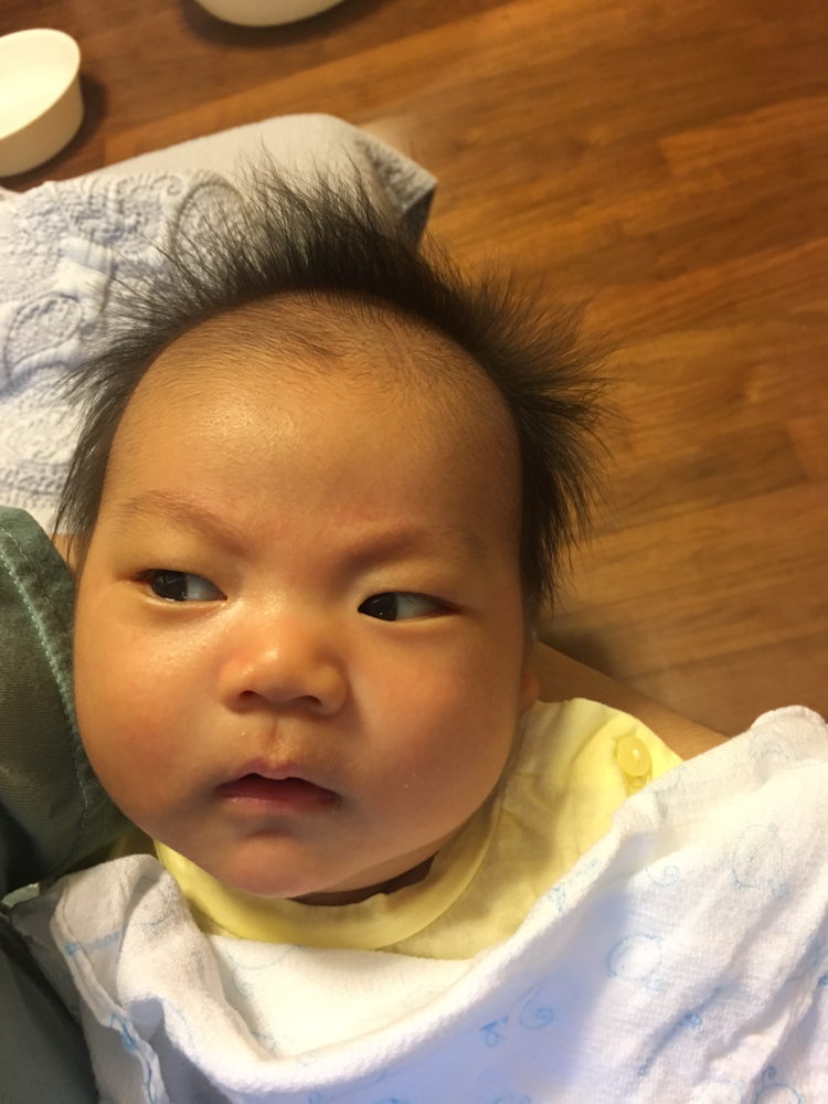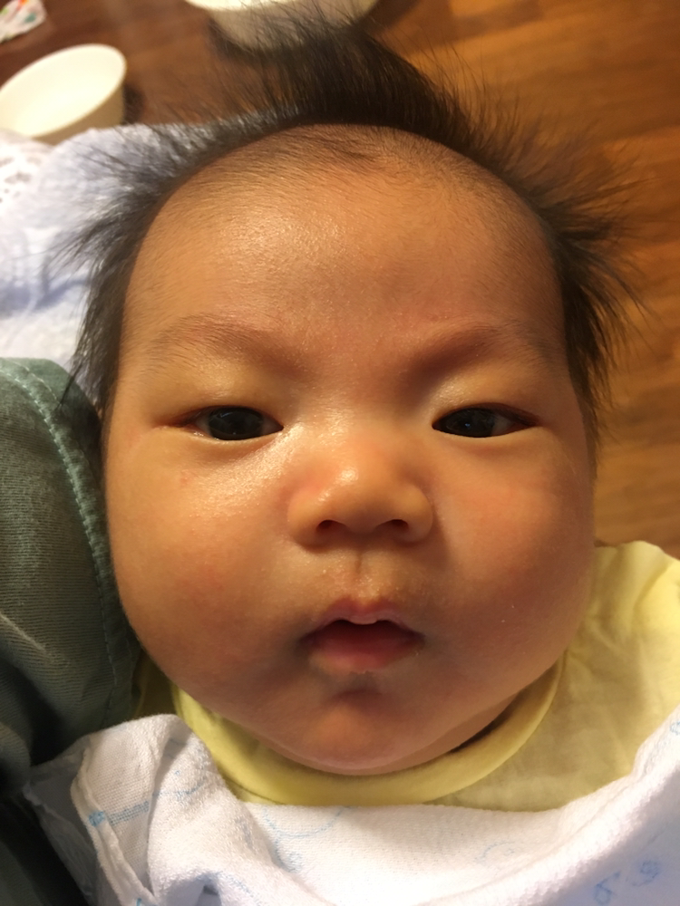 눈을 최근에 부쩍 잘 마주치더니 표정 복제를 본격적으로 하기 시작했다. 방긋방긋 웃어주며 자기도 웃고, 심각한 표정을 지으면 자기도 심각한 표정을 짓는다. 우는 것 말고 표정으로도 자신의 기분을 마음껏 표현했으면 한다.