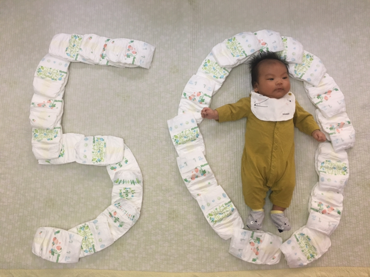 낮 수유 텀과 밤 수유 텀이 차이를 보이기도 하고 낮잠은 점차 줄면서 밤잠을 본격적으로 자기 시작했다. 50일이 되는 날 50일의 기적이 있을 것인가?! 했지만 50일의 기적은 없었고...