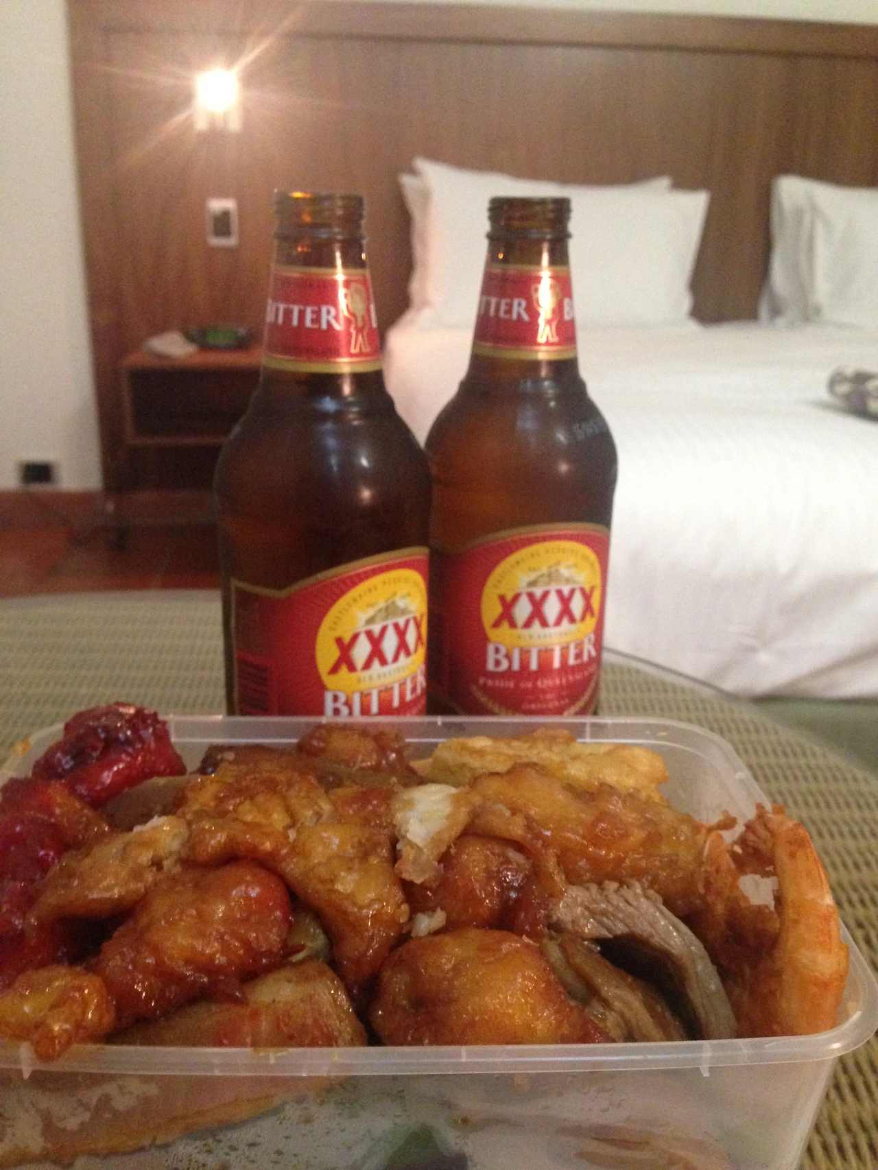 그리고 한국의 뷔페식 식당처럼 식당이 주욱 늘어져 있길래 거기서 저녁거리도 샀다. 그릇하나 주고 원하는거 담는 방식. 우린 고기 고기하게 고기만 잔뜩 담아 왔다 후후. 저녁거리 사고 숙소쪽으로 돌아와 XXXX 6병사고….