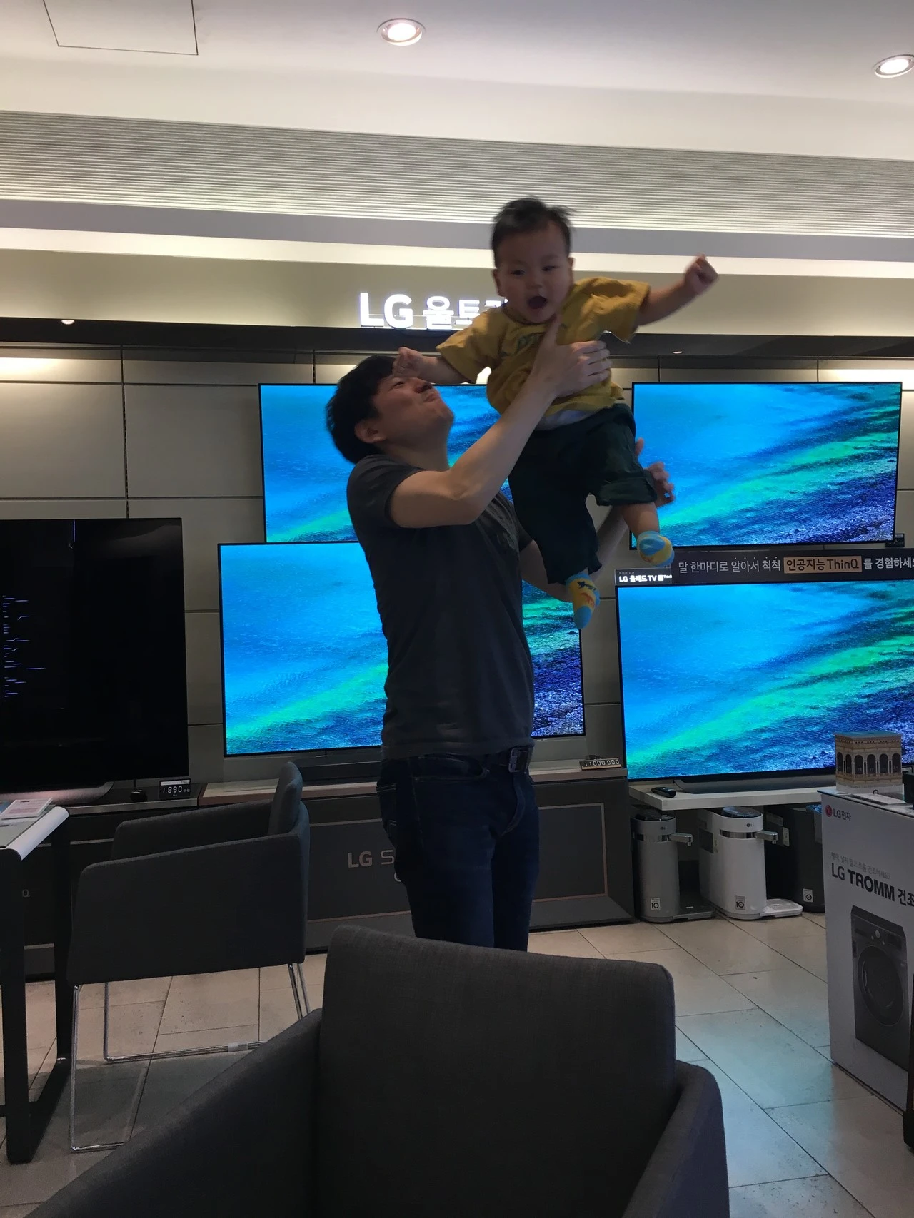 덕분에 백화점이랑 마트에 가서 가전제품을 좀 볼 시간이 있었다. 나랑 도하는 와이프가 견적 뽑는데 동안 신나게 돌아다녔다. 아무래도 어머님 가전이랑, 우리 가전이 몇 개를 고르다 보니 상당한 거금이 들어간다. 덕분에 오래 고민 고민... 덕분에 도하가 엄청 지쳐했는데 그래도 나는 도하랑 붙어 있으니 신났다. 그리고선 저녁 먹고 집에 들어오니 하루가 훌쩍~!
