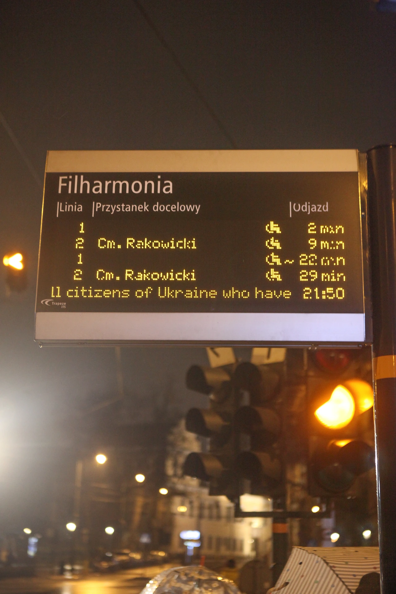 폴란드 크라쿠프역에 도착했다. 우연히 만난 우크라이나 친구 H가 옆에 있었다. H는 지금 폴란드에 살고 있다고 했다. 크라쿠프역은 피난민으로 보이는 사람들로 북적였다. H는 전쟁 때문이라고 했다. 버스 도착을 알리는 스크린에 특이한 문장이 적혀있었다. “우크라이나 여권을 소지한 시민들은 대중교통을 무료로 이용할 수 있습니다.” 발 빠른 조치가 인상적이었다.