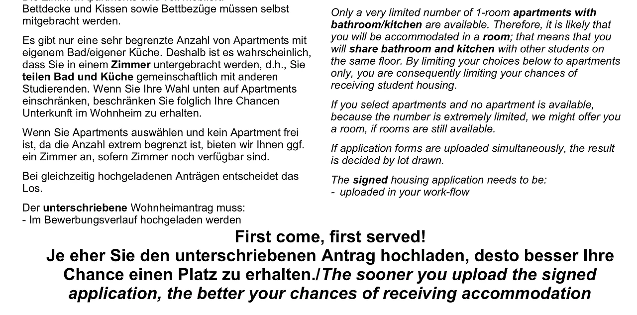 결국 내가 선택한 기숙사에 배정받았다. 교환학생 기간에는 집을 구하는 것이 어렵지 않다. 그 이후에는 쯔비셴미테(zwischenmiete)를 추천한다. 거주자가 일정 기간 집을 비우면 다른 사람에게 빌려주는 식이다. 페이스북 그룹, 기숙사 왓츠앱 채팅방 등 다양한 경로로 구할 수 있다. 나는 이 방법으로 교환학생 이후에도 같은 기숙사에서 거주할 수 있었다.