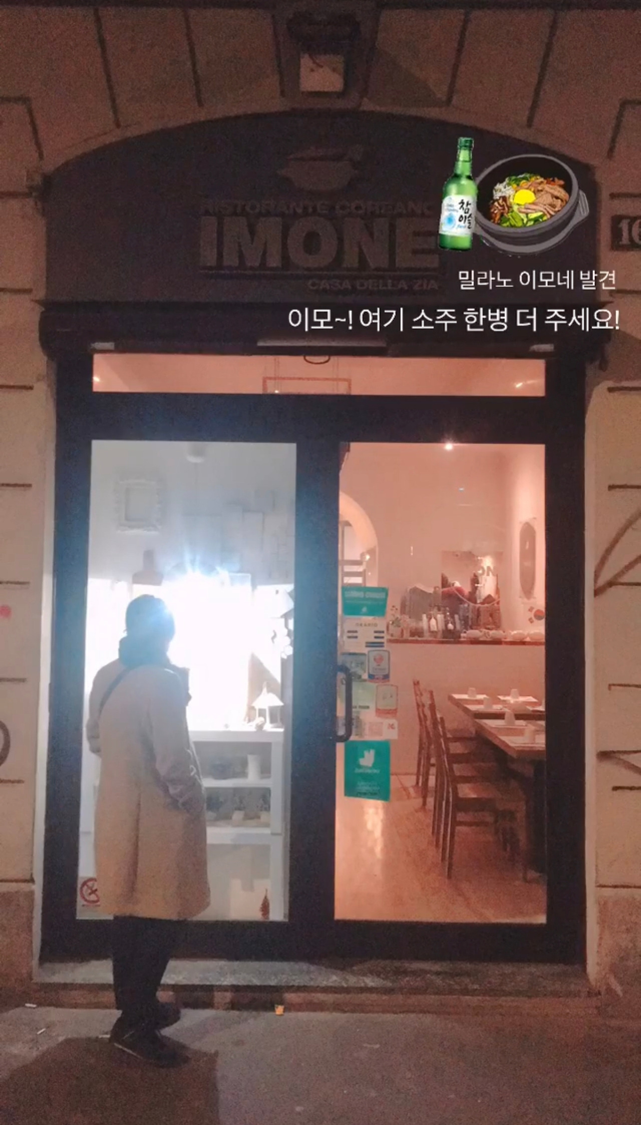 한식당에 갔다. 밀라노에서 한국 음식을 먹을 수 있는 건 놀라웠다. 삼겹살과 소주, 된장찌개는 다른 세상의 음식처럼 보였다. 너무 오랜만에 보는 음식이었다. 지글지글 고기가 구워지는 소리, 소주잔이 부딪치는 쨍하는 소리는 한국적인 분위기를 만들었다. 이곳에서 먹은 음식은 이탈리아에서 먹은 그 어떤 음식보다도 맛있었다. 나는 어쩔 수 없이 한국인인가보다.
