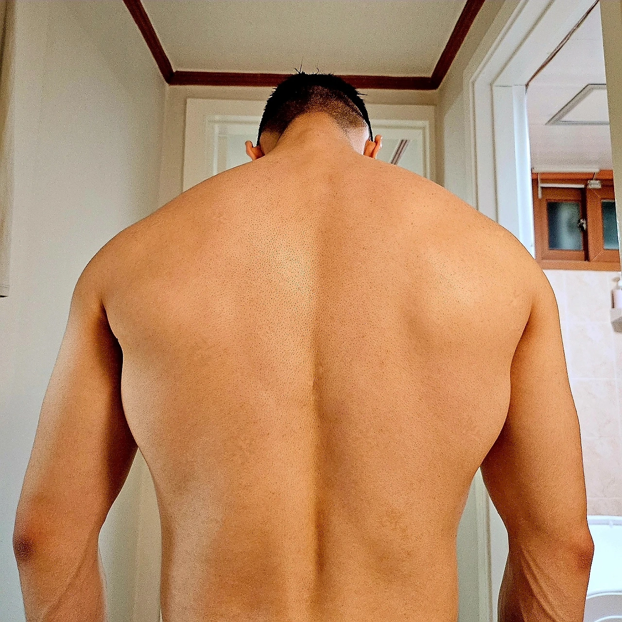 등 운동에서 광배근과 승모근에만 집중하다가, 실제 등 사진을 찍어보니 승모근과 광배근 사이근육인 대원근이 빈약하다.