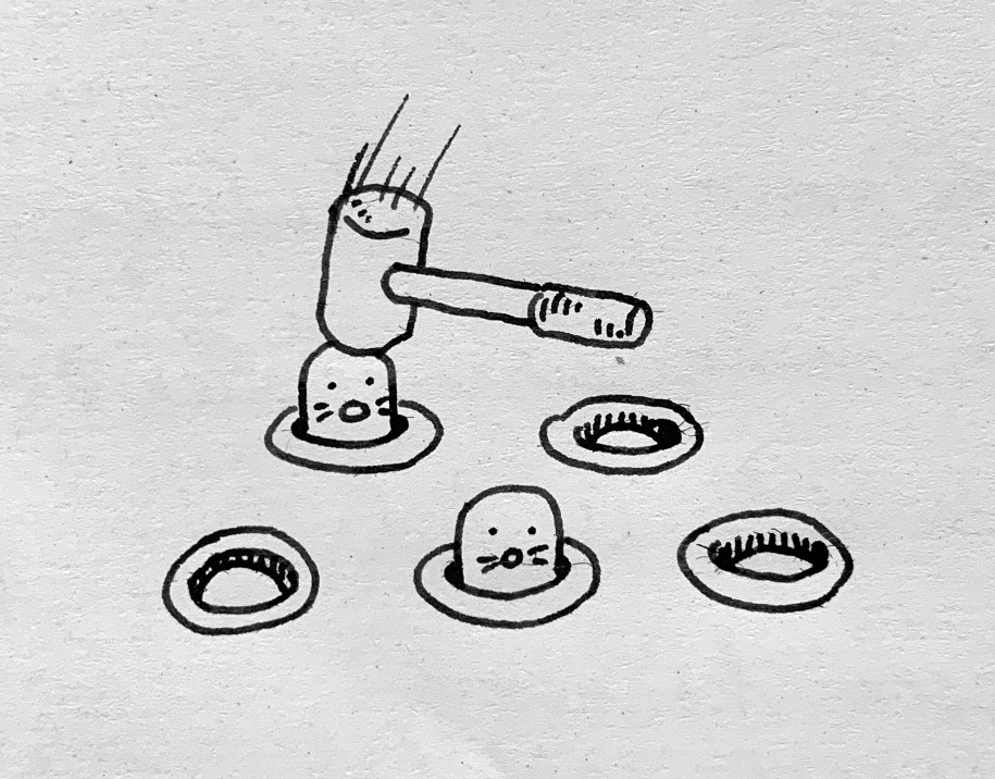 엄벌 만능주의의 태도는 옛날 오락실에 꼭 있던 두더지 게임기에서, 두더지를 튀어나오게 하는 내부 기계장치는 생각치 않고 방망이를 충분히 많이 세게 휘두르면 두더지가 안 나타날 거라고 생각하는 격이라고 봅니다. 사람들은 다들 각자의 두더지 구멍 안에서 살고, 다른 두더지 구멍의 사정을 모른 채, 다른 구멍에서 두더지가 튀어나오면 방망이질을 빡세게 하라고 목청을 높입니다. 하지만 자기가 사는 구멍에서 두더지가 튀어나오면, 다른 구멍 사람들이 모두 입을 모아 방망이만을 외칠 때, 그걸로는 근본적으로 해결될 일이 아닌데, 라고 생각하겠지요.