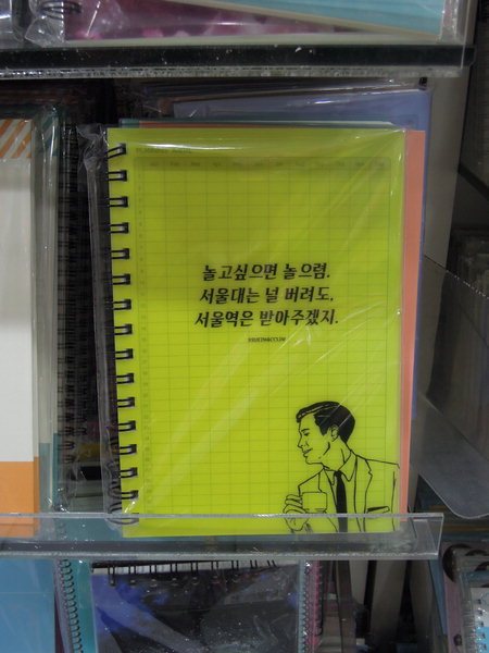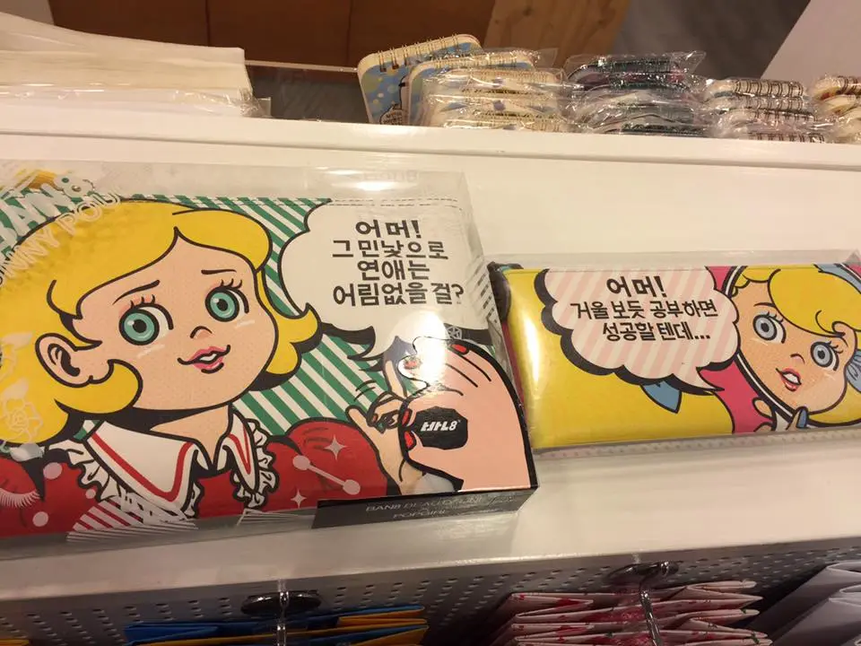 학용품의 이 문구들은 물론 모두 재미있는 농담으로서 들어간 것입니다. 실제로 많은 소비자들은 그저 재미있는 공책이구나, 했을 겁니다 (예시). 맨 마지막 공책도 “10분만…” 공책과 같은 제조사에서 만든 것인데요, 거기에 들어간 문구는 틀림없이 농담이라고 확인할 수 있는 종류의 것이죠. 제조사는 확실히 그냥 웃기고 재밌는 공책을 만들어서 많이 팔아보겠다는 생각이었을 뿐이었을 겁니다.