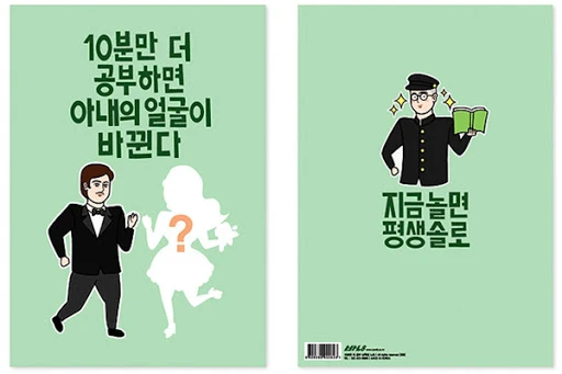 "10분 더 공부하면 아내 얼굴이 / 남편 직업이 바뀐다."