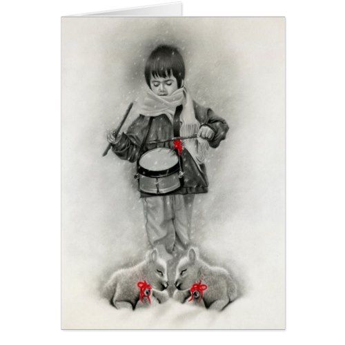 어느 날 한 가난한 아이에게 서양 나라의 누군가가 쓴 크리스마스 카드가 도착한다. 전쟁을 치른 후 폐허가 되어 있던 당대 상황을 참조한다면, 아이는 전쟁고아로서 고아원에 있던 아이일 수 있으며, 카드가 배달된 장소는 아이들이 지내는 어떤 시설이나 학교일 수도 있다. 아이는 그곳으로 부친 단체 위문편지 같은 서양 나라의 크리스마스 카드를 받았다. 제목으로 보아 크리스마스 카드의 표지에 아마 '북치는 소년' 그림이 있지 않았을까.