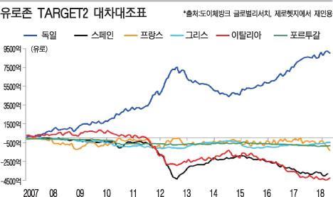 쉽게말해 TARGET 2 대차대조는 각국 중앙은행이 ECB에 대해 갖고 있는 채무 또는 채권을 의미하는데 개인으로 치면 마이너스 통장을 뜻한다.
