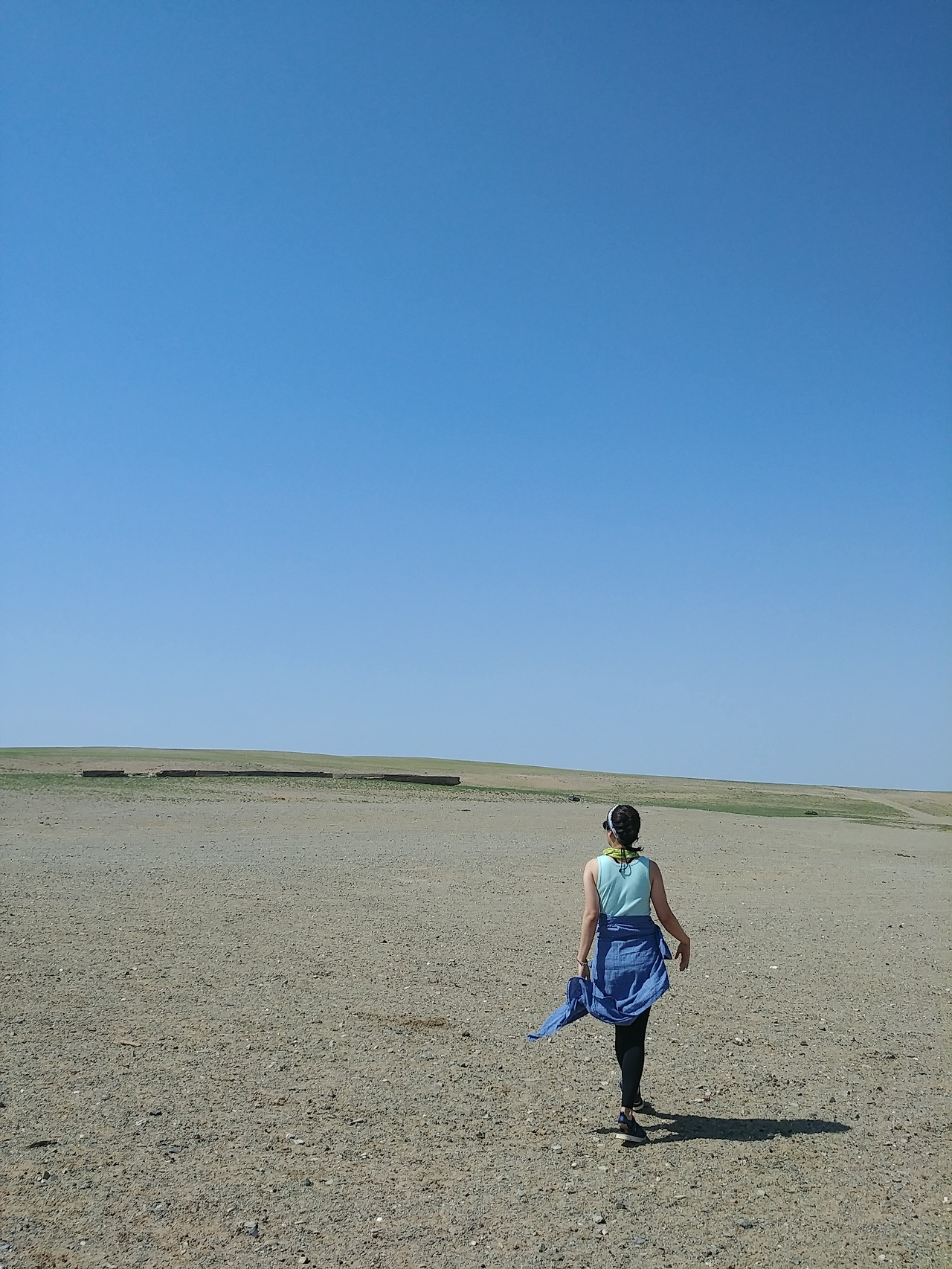 홍고린엘스 가는 길, 돌 파는 곳 근처에서. 작가 프로필 사진은 사실 여기 있던 화장실 사진이다.