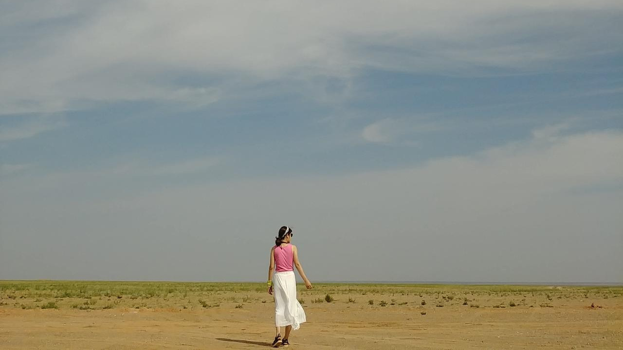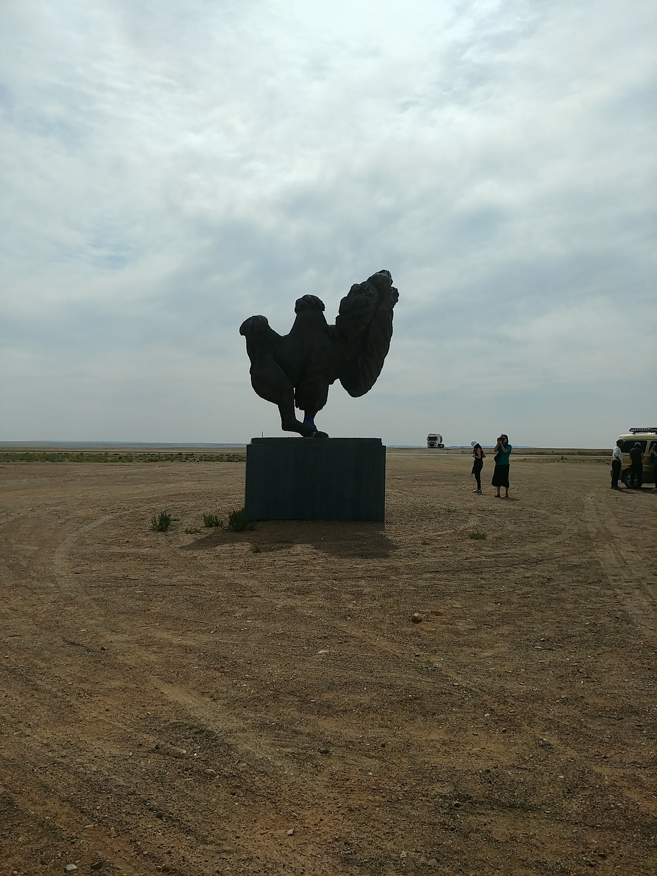 아침을 먹고 9시 정도에 출발했다. 출발한 지 얼마 되지 않아 엘사가 "얘들아, 사진 찍고 가자."라며 차를 세우고 내렸다. 큰 낙타 동상 하나가 서 있었다. 침게가 낙타 동상 너머로 나 있는 길이 예전에 낙타에 짐을 싣고 중국으로 가던 길이라고 간단히 말해주었다. 그 후 헤라, 엘사, 침게는 담배를 피웠다.