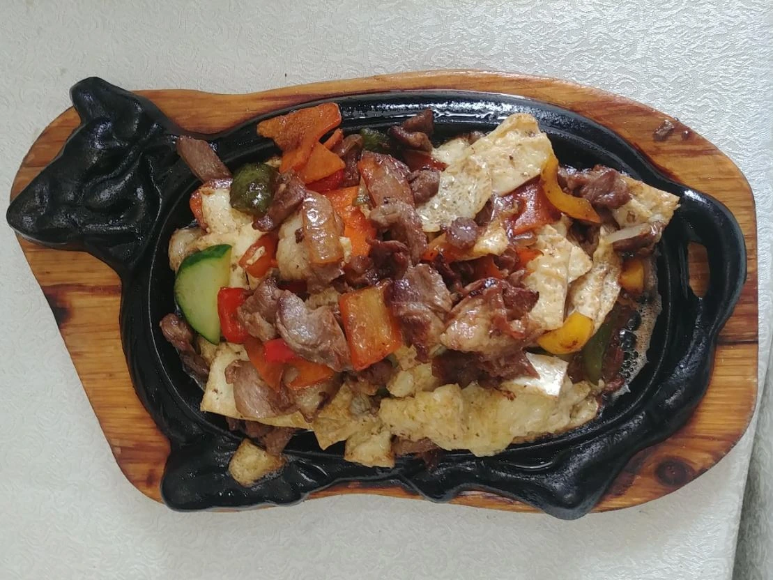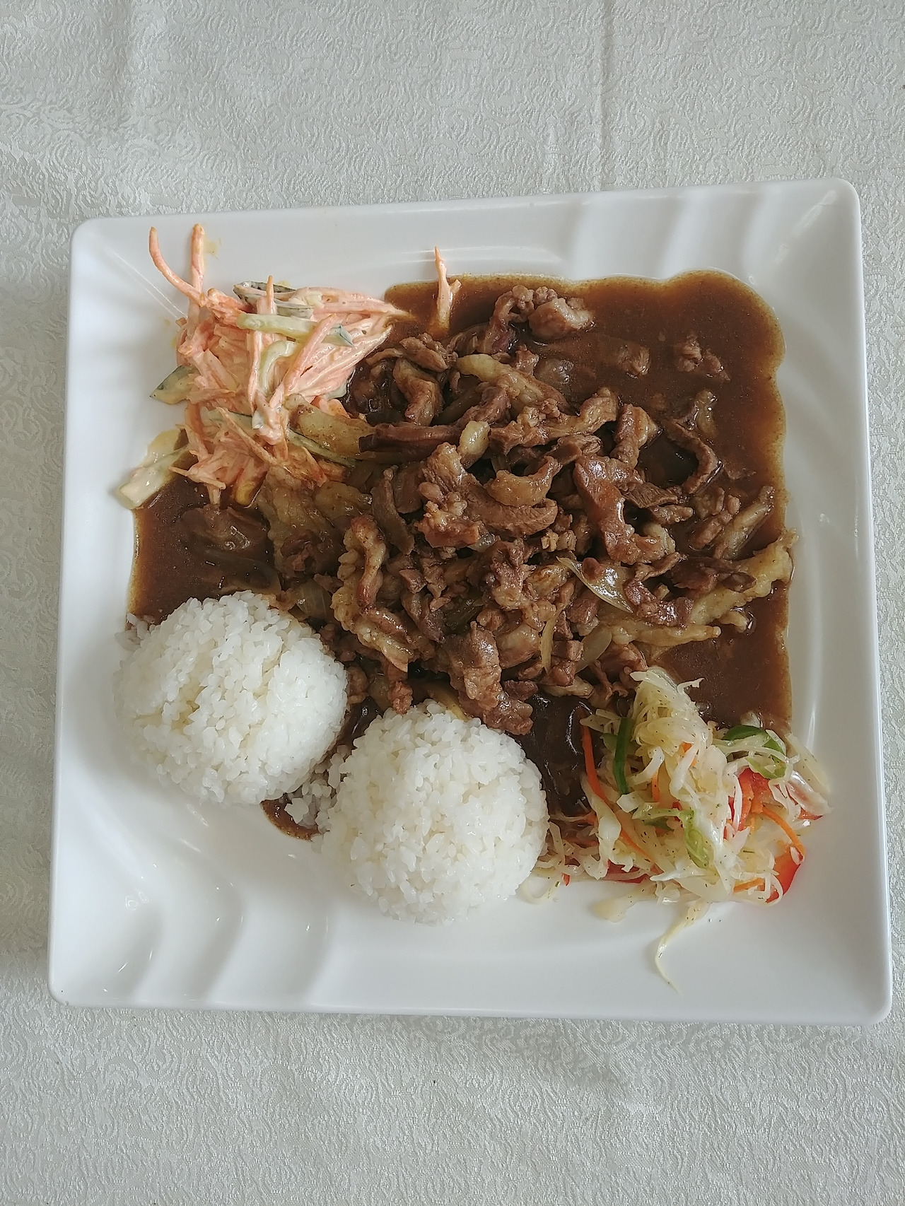 왼쪽이 양고기, 오른쪽이 소고기(반대인가?) 그리고 밥이 두공기 나왔다. 흰 것은 계란 노른자와 흰자를 섞은 것. 아침도 그렇고 몽골 달걀은 좀 흰 것 같다.