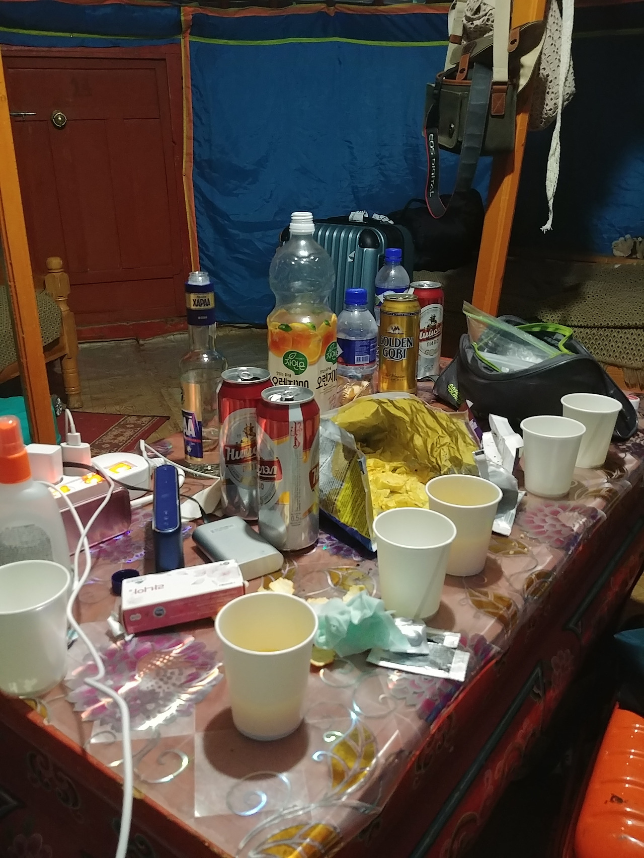 엘사는 알겠다고 했고 우리는 우리 게르로 돌아갔다. 나는 속이 계속 더부룩해서 한국에서 챙겨 온 소화제를 먹었다. 그 후 밤이 되니 괜찮아져서 언제 속이 안 좋았냐는 듯 오전에 산 맥주와 보드카를 마실 수 있었다.