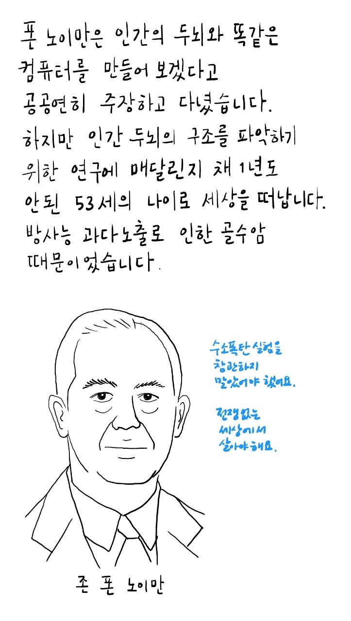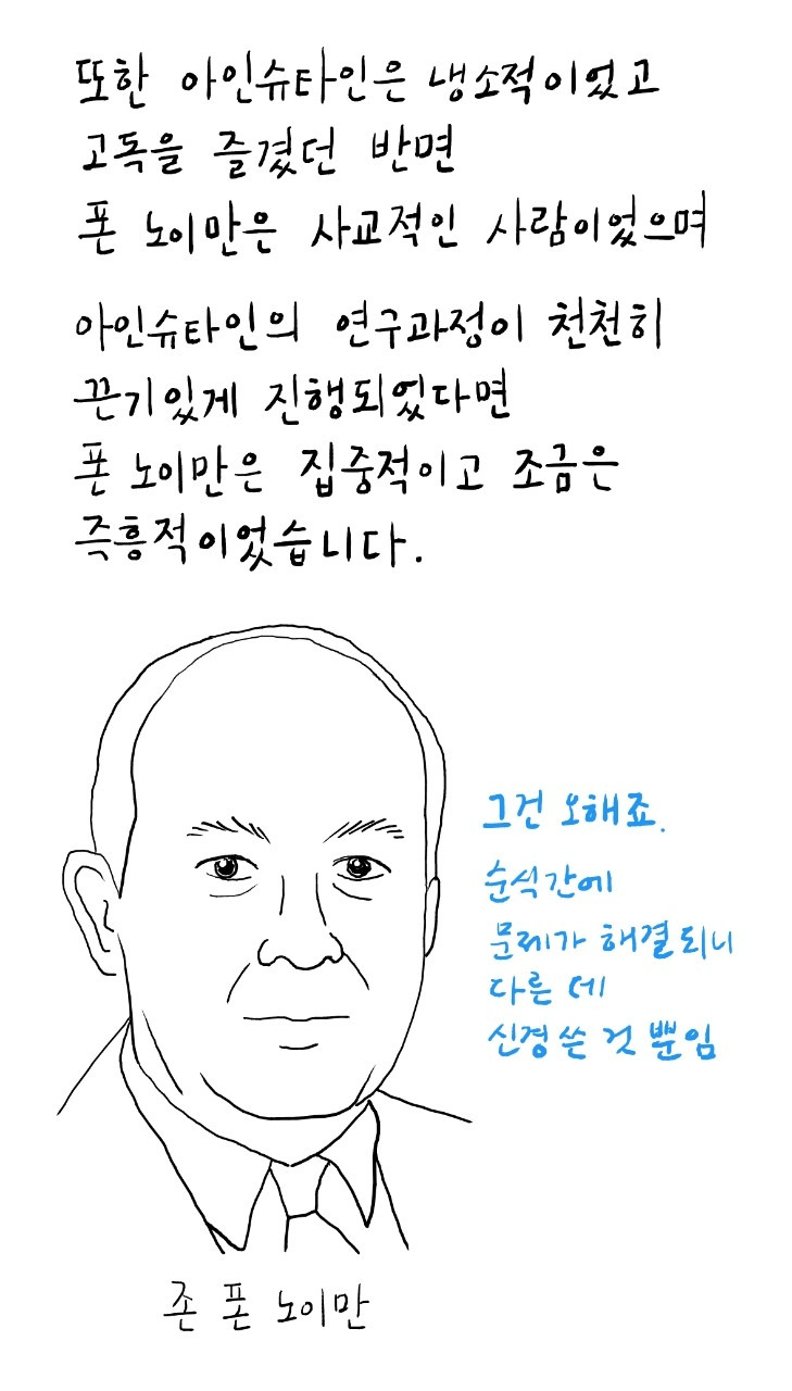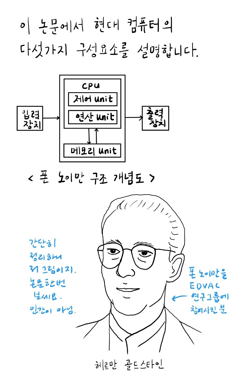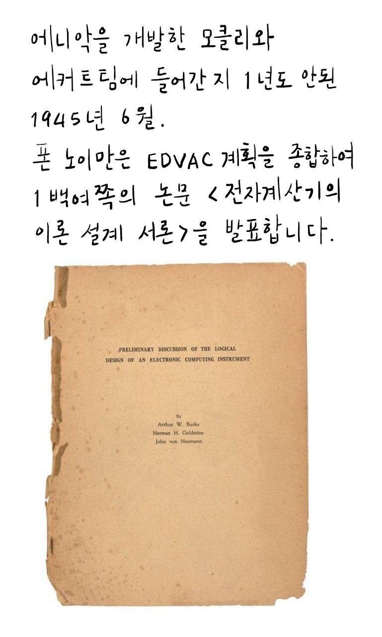 덕분에 오늘날 컴퓨터를 폰 노이만 기계라고 부르게 된 계기가 되었습니다.