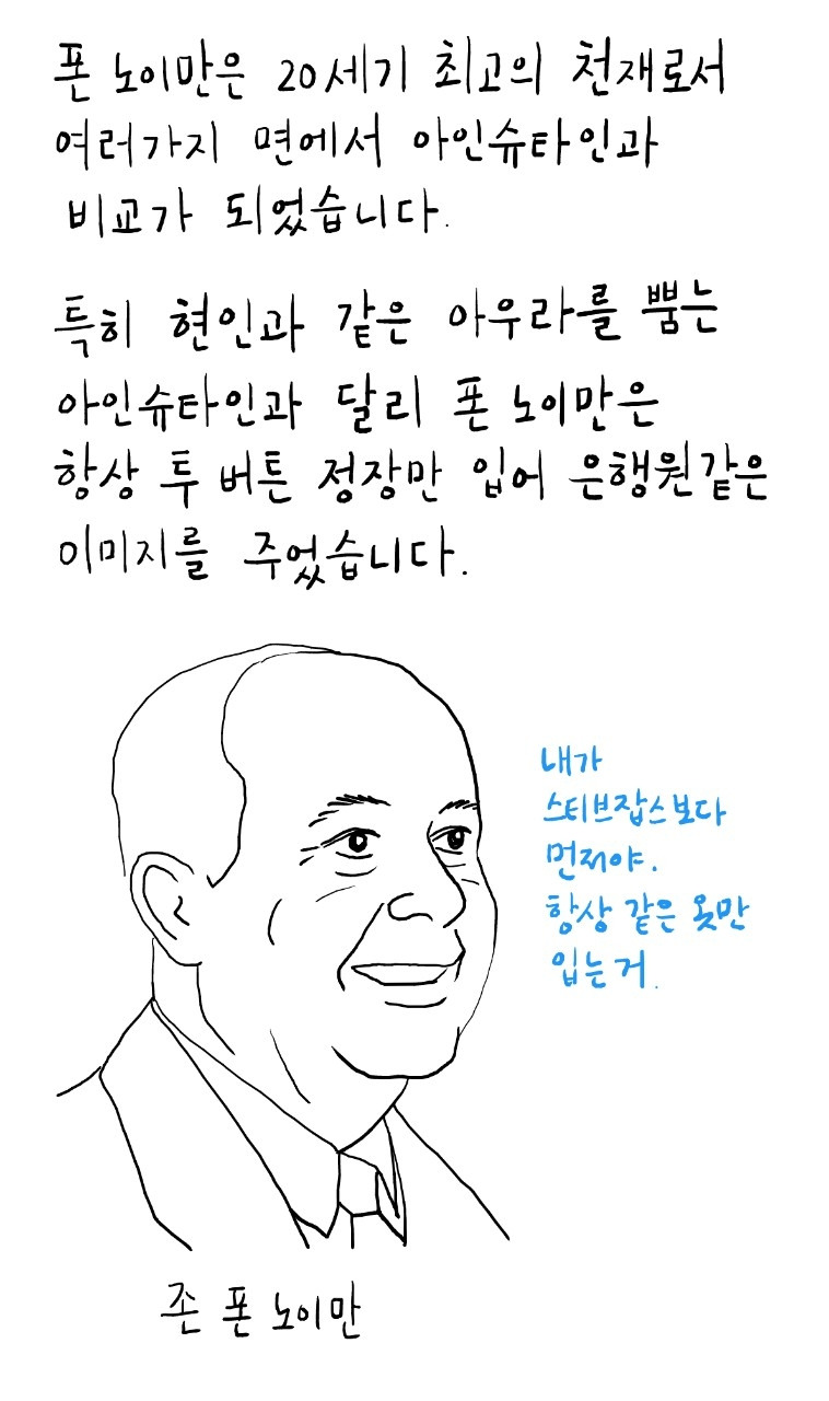 특히 현인과 같은 아우라를 뿜는 아인슈타인과 달리 폰 노이만은 항상 투버튼 정장만 입어 은행원같은 이미지를 주었습니다.