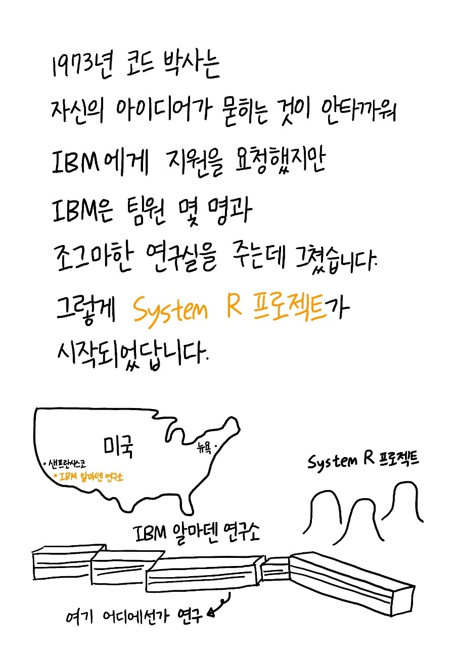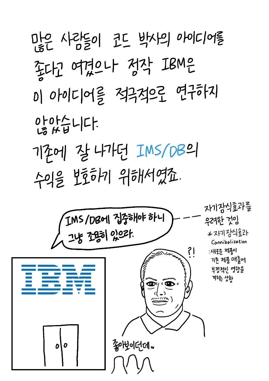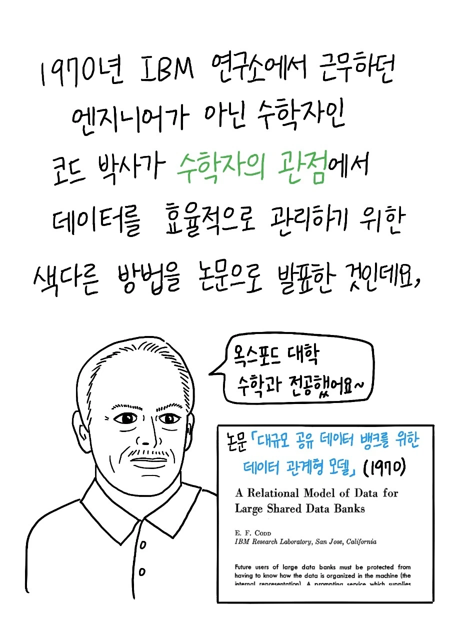 번 와츠와 IMS/DB 지난 기고는 최초의 DBMS인 IDS에 대한 이야기로 끝났었는데요. 이 당시 DB는 예를 들자면, [권선생→이화백→홍작가→…]과 같이 꼬리에 꼬리를 무는 구조로 [IT easy, IT is! 팀]이라