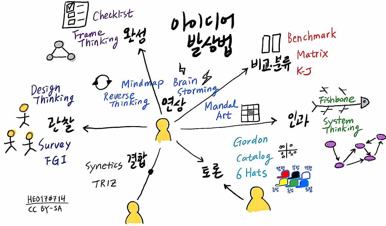 창의적인 아이디어를 내기 위한 방법들이 많이 있다. 그 중 몇 가지를 소개해본다.
