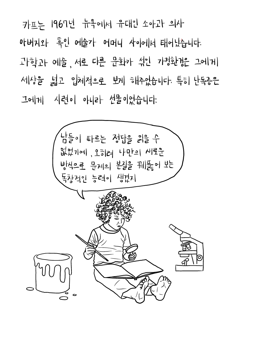 카프는 1967년 뉴욕에서 유대인 소아과 의사 아버지 Robert Joseph Karp와 흑인 예술가 어머니 Leah Jaynes Karp 사이에서 태어났습니다.