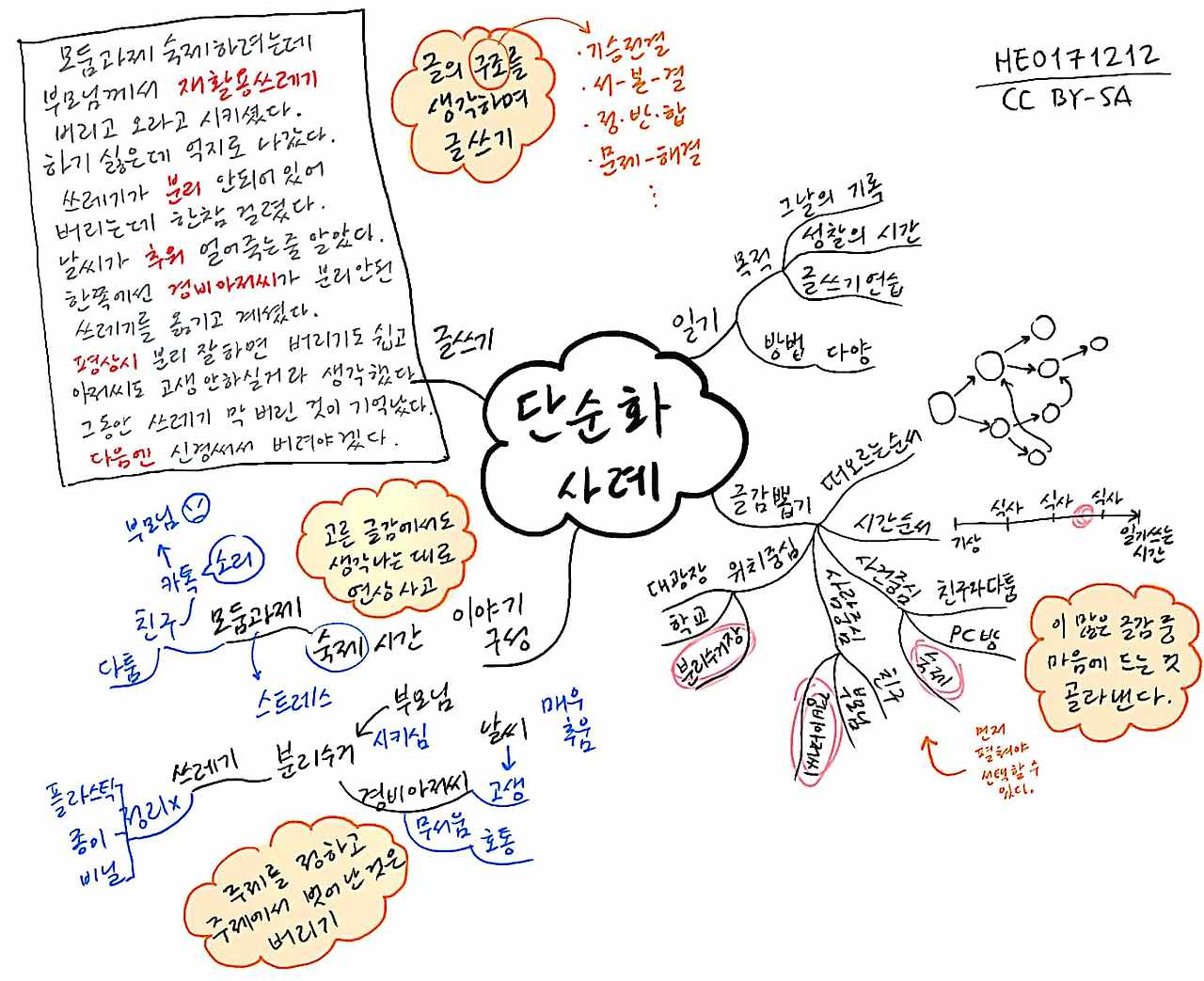 떠오르는 순서 : 머리속에 떠오르는 생각의 조각들을 기록한다. 단어 하나하나 쓰면서 거기에 연관된, 그날 있었던 사실들을 이어 적는다. 적다보면 순차적으로 정리되어 생각나지 않고, 산만하게 떠오를 것이다. 그것이 두뇌의 생각 작용이니 불편하게 생각하지 말자.