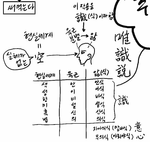 불교의 유식설도 추상화의 한 예이다. 현실세계는 실체가 없다(원래 있다고 할 것이 없다는 의미). 인간의 육근 眼耳鼻舌身意(안이비설신의; 눈•귀•코•혀•몸•생각)에 의해 알아차려지게 되는 순간이 그 실체가 드러나는 순간이다. 그 알아차리는 것을 識(식)이라 한다. 이 식은 감각기관으로부터 얻게되는 육식과 자아의식, 그리고 무의식으로 나뉜다. 이것이 눈에 보이지 않는 세계를 추상화시켜 개념화한 것이다.