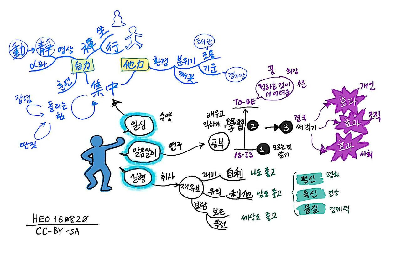 우리는 앞서 생각을 잘하기 위한 방법으로 N+1 사고와 일심, 알음알이, 실행에 대해 살펴보았다. 이것은 끊임없이 우리가 살아가면서 항상 가져가야할 기본 사이클이다. 마인드맵모델링의 사이클을 여기에 대비해보면 준비과정은 일심, 마인드맵핑과 모델링, N+1 사고는 알음알이, 검증은 실행에 해당한다. 실행이 없는 알음알이는 미완이며, 알음알이는 실행을 통해 완성이 된다. 이 과정을 피하려고 하면 안된다. 부딪혀서 깨지고, 상처나고, 아물어야 한다. 쉬운 일은 아니다. 하지만 그것이 없으면 진짜공부가 아닌 것이다.