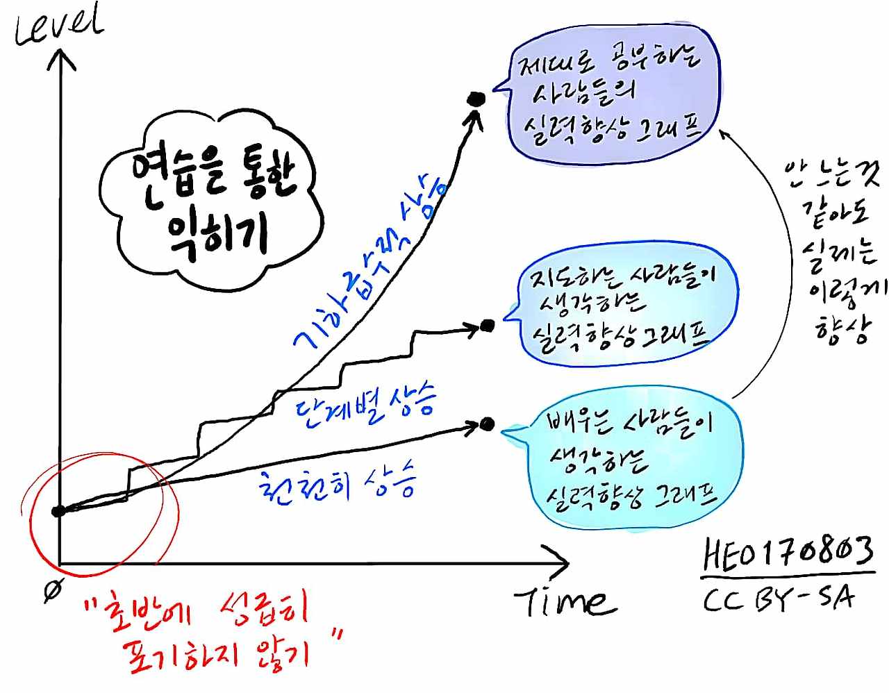 초반에 성급히 포기하지 말고, 스승의 지도를 받으며 꾸준히 연습하자. 그래서 기하급수적인 실력상승을 경험해보자. 이것이 연습을 통한 익히기의 묘미다.