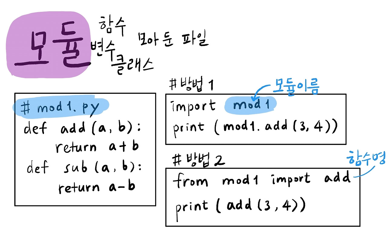 위의 함수와 클래스들을 모아둔 파일이 모듈입니다.