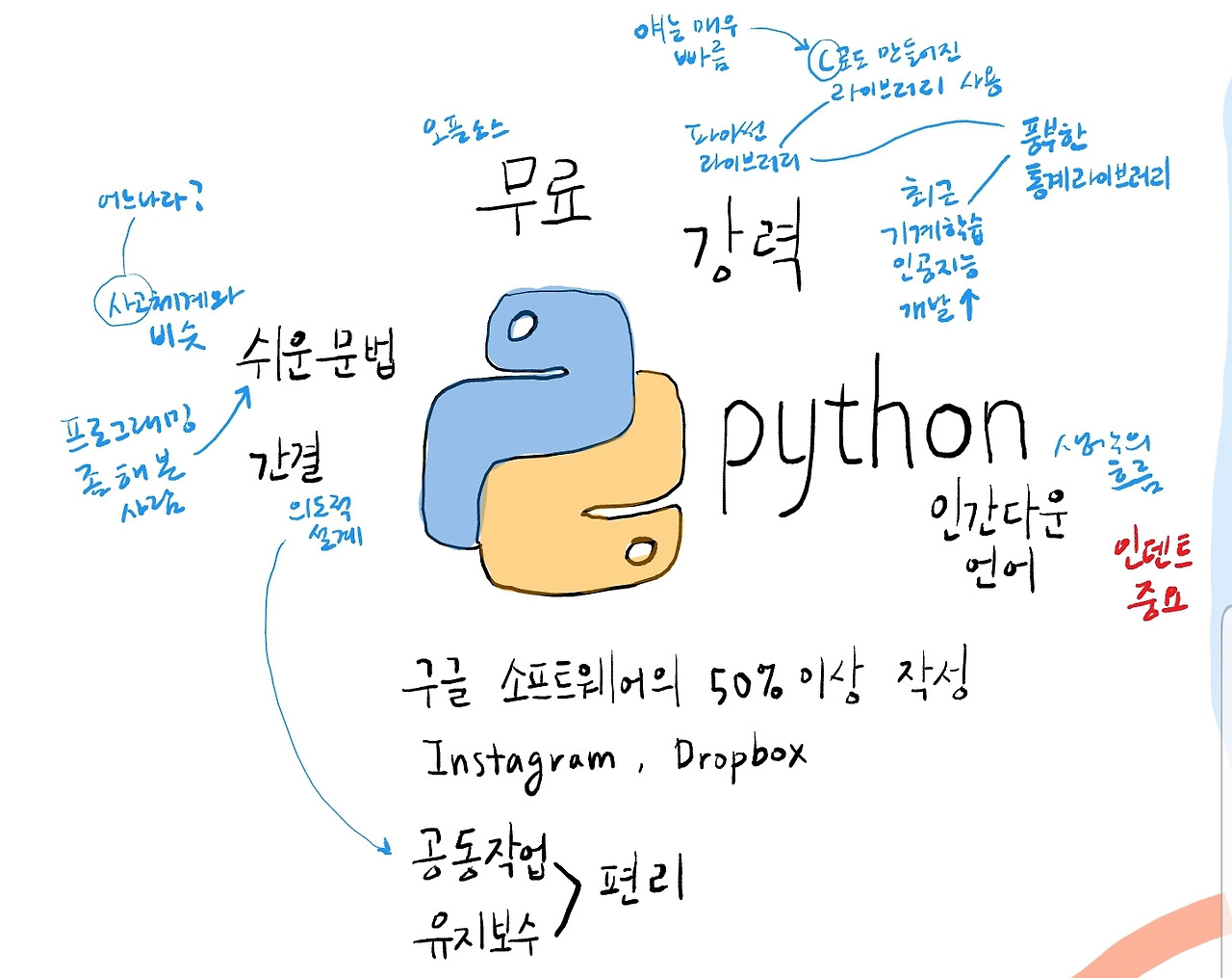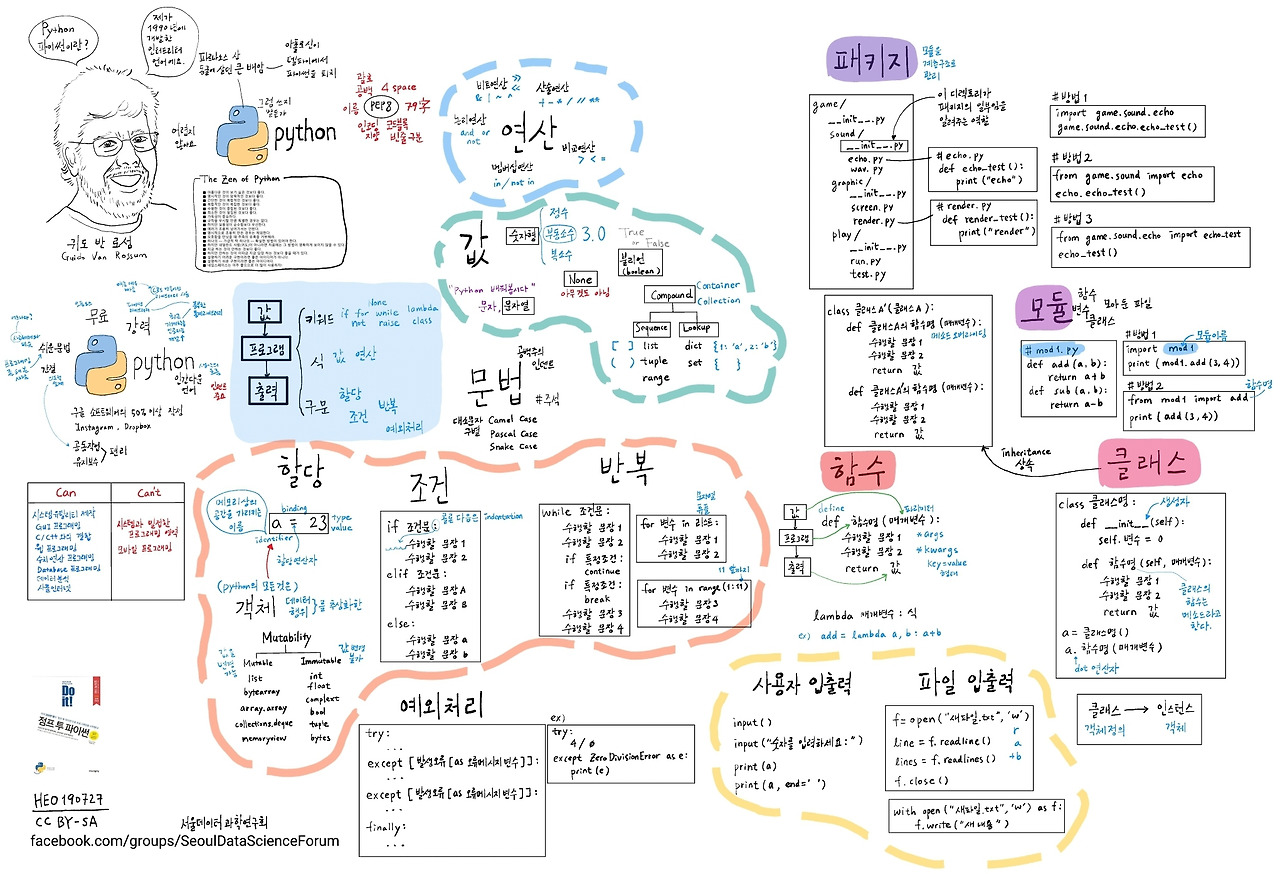 파이썬 Python은 귀도 반 로섬 Guido Van Rossum이 1990년에 개발한 프로그래밍 언어입니다.