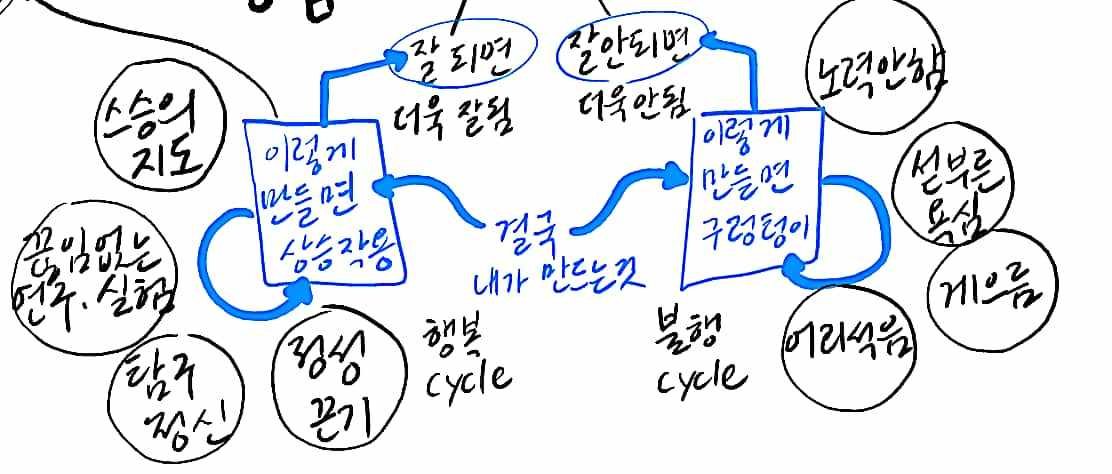 이 사이클이 위 사례 뿐이겠는가. 하지만 본인의 과거 잘 되었던 것과 잘 안되었던 것들을 돌아보자. 분명 위와 같은 사이클이 있었을 것이다.