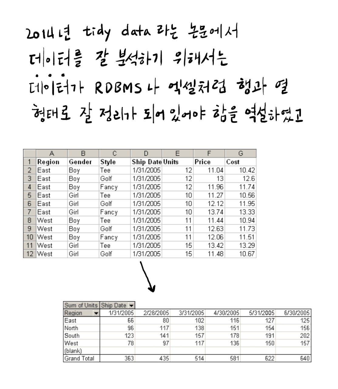 데이터가 RDBMS나 엑셀처럼 행과 열의 형태로