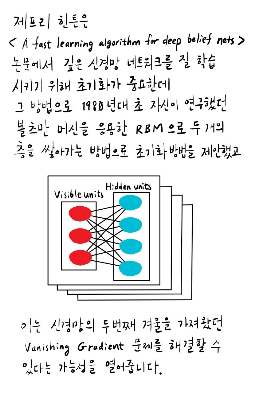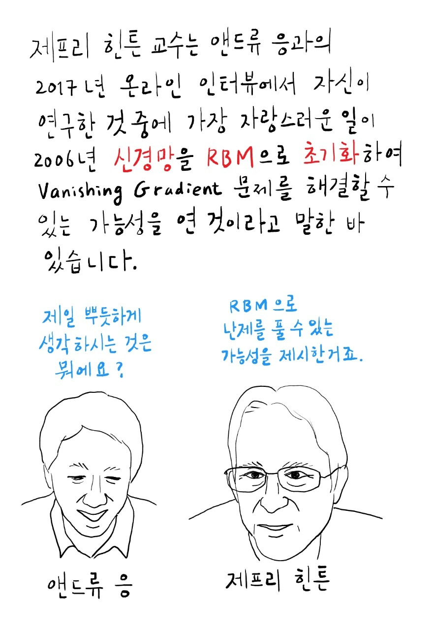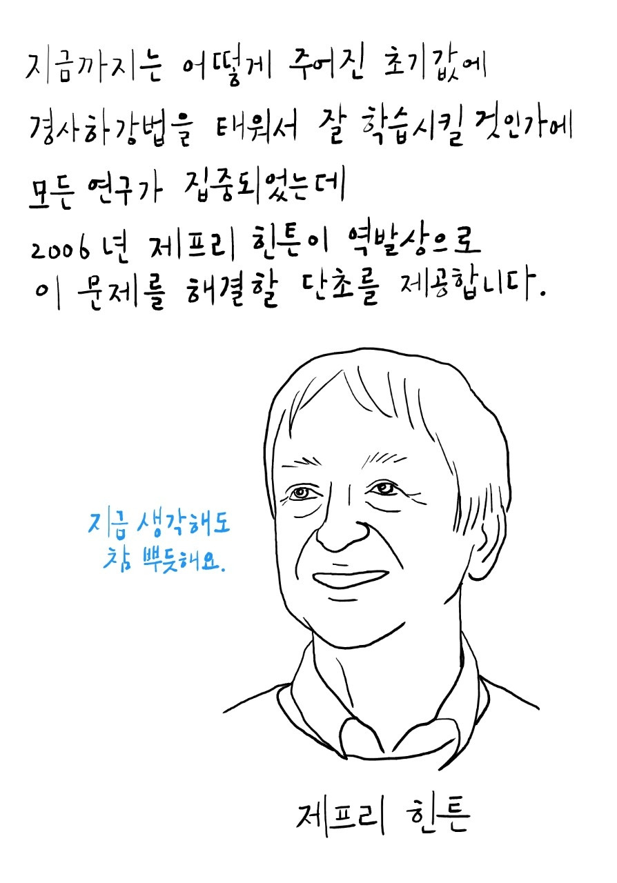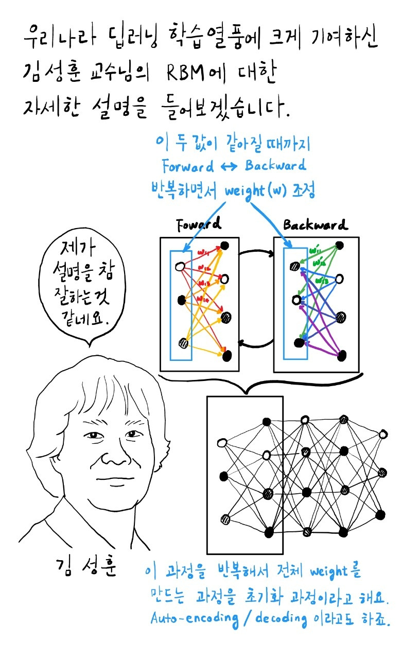 앞뒤로만 연결된 제한된 네트워크에서 1) 어떤 입력값이 있을 때 2) Forward 방법으로 생성된 출력값으로부터 3) Backward 방법으로 생성된 입력값을 구하여 4) 1)과 3)이 같아질 때까지 반복하면서 Weight(w)를 초기화시키는 겁니다.