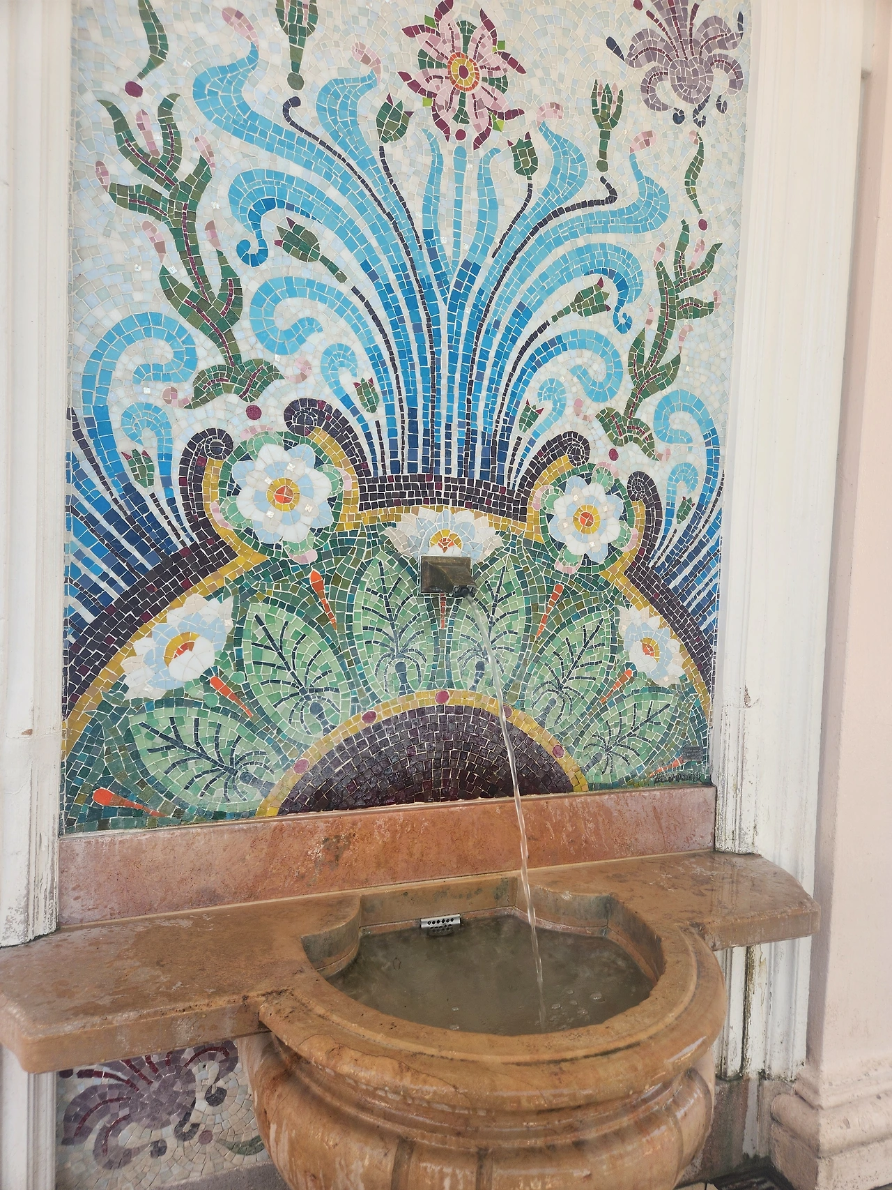 경사진 길을 걸어 올라가서 에비앙 원천수를 빈 페트병에 받아 마셨다. 물이 우리 약수터처럼 '쫄쫄'이 아니라 '콸콸' 수준으로 나와서 줄을 오래 서지 않아도 되었다. 물맛은 시원했고 단맛이 났다.