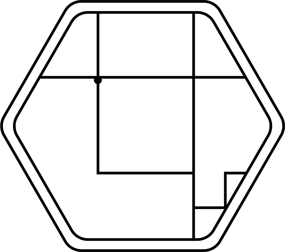 육각형 안에 있는 작은 원에서 빛이 뻗어 나가 길을 개척하기 시작합니다.