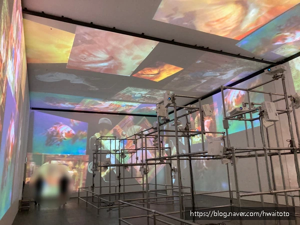 이 공간에 들어가면 말 그대로 영상과 음악이 온몸에 쏟아지는 듯한 기분이 든다.