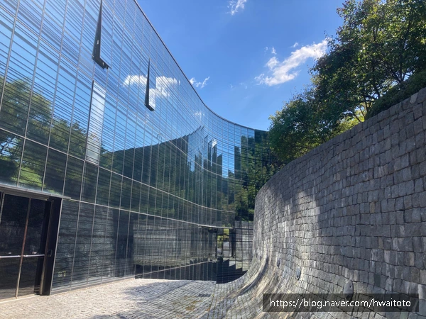 전시를 보고 난 후 뒷문으로 나가자 곡선의 긴 돌담길이 나오는데, 보는 순간 가우디의 구엘공원의 파도 동굴이 떠올랐다.