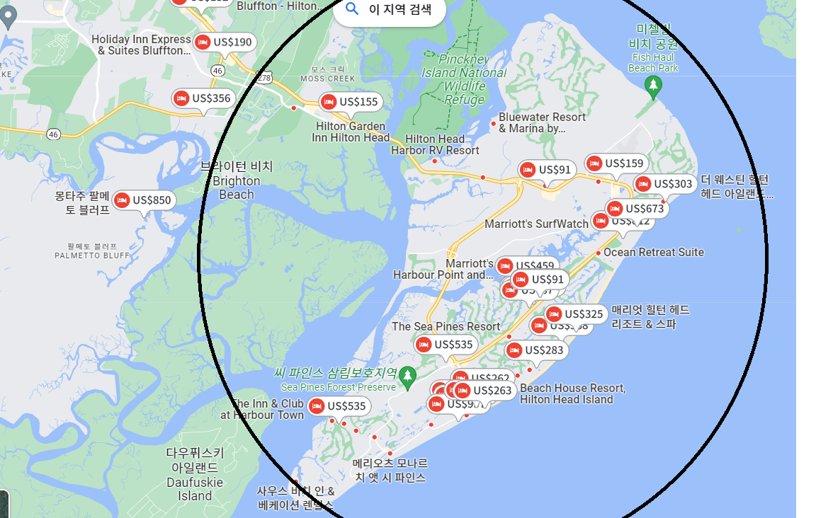 이번 여행지는 제가 구글지도를 이리저리 움직이다가 발견한 미 동부의 보석 같은 섬 힐턴 헤드 아일랜드(Hilton Head Island)를 소개합니다.