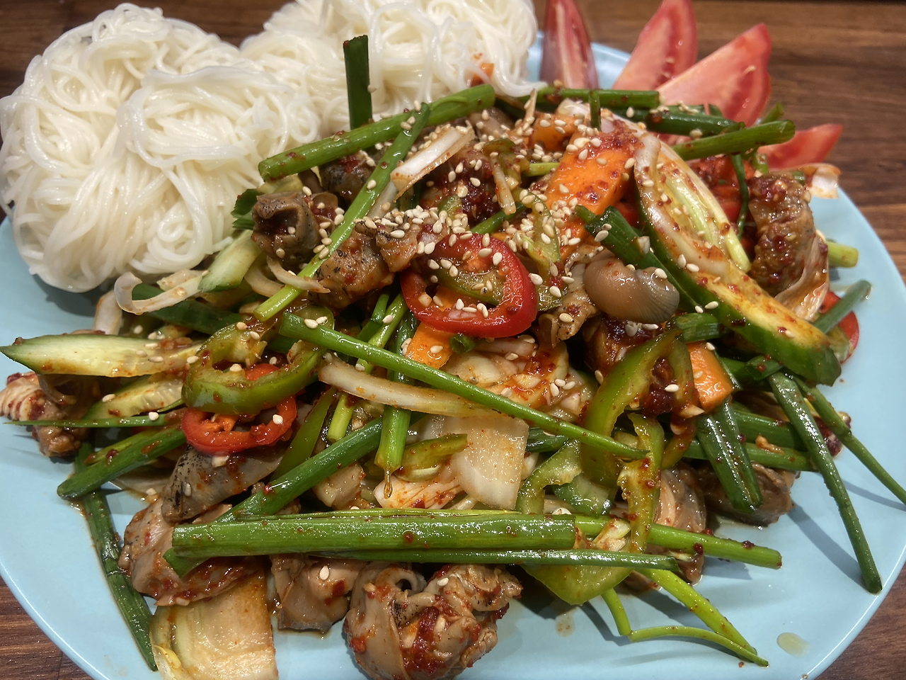 골뱅이무침은 채소는 냉장고에 있는 재료들로 하는 편이다. 양배추 같은 게 있다면 좋겠지만, 골뱅이를 위해 양배추를 살 생각은 없다. 냉장고 속 재료로 양파, 쪽파, 당근 정도로 준비해준다. 가장 중요한 양념장을 만든다. 고추장, 고춧가루, 식초, 설탕, 다진 마늘, 참기름, 그리고 골뱅이캔의 국물 약간. 모두 잘 섞어주고 맛을 본다. 감칠맛이 돈다. 훌륭하다. 골뱅이도 반으로 잘라먹기 좋은 크기로 준비해 준다. 골뱅이 무침이 있다면 소면이 마땅히 옆자리를 지켜줘야 한다. 소면을 삶는다. 물이 끓어 넘치지 않도록 집중한다. 소면 한가닥 맛을 보고 익었는지 판단한다. 잘 익었으니 체에 밭친 후, 찬물로 빨래 빨듯이 팍팍 헹궈서 찰지게 해 준다. 골뱅이 무침 옆에 소면을 차분히 내려놓는다. 골뱅이 소면 한 그릇 완성이다.