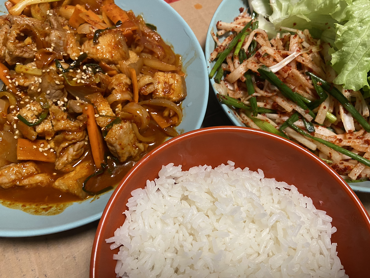 제육볶음을 해서 한 끼를 먹었다. 고기만 건져내서 상추와 쌈을 싸서 먹었더니 제육 양념이 흥건하게 가득 남아있었다. 버리자니 어쩐지 아까웠다. 볶음밥으로 해서 먹으면 맛있을 것이 눈에 보였다. 한편에 남겨두었다.