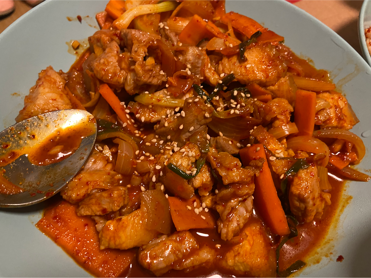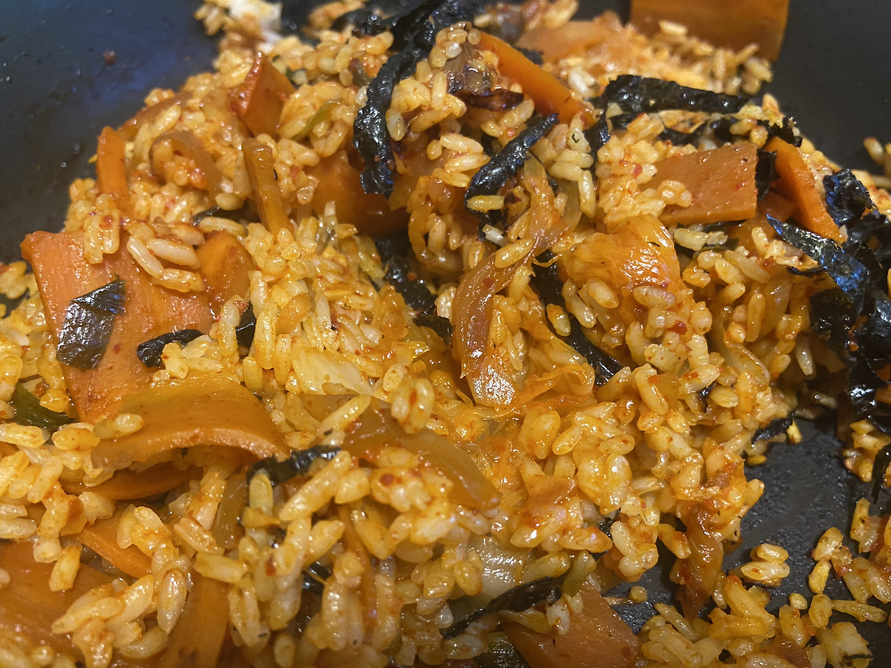 주말이라 느지막이 일어났다. 남겨둔 제육볶음 양념이 생각났다. 프라이팬에 양념과 밥을 넣고 김치도 잘라 넣었다. 수분이 바짝 마를 때까지 계속 볶아주었다. 김도 잘라 넣어주었다. 참기름을 한 번 쭈욱 둘러준다. 고소한 냄새가 코를 찌른다. 맛보지 않았지만 이미 맛있음이 느껴진다. 남은 음식을 이용해서 한 끼를 해결하니 돈을 번 느낌이다. 맛까지 있으니 아주 만족스럽다. 제육볶음이나 오징어 볶음 같은 볶음 요리를 해서 덮밥으로 먹지 않는 이상 양념들이 남기 마련이다. 양념을 남겨두고, 김치를 넣어서 볶아먹어 보자. 그냥 김치만 볶아서 만든 김치볶음밥보다 감칠맛이 더 가득한 볶음밥이 완성된다. 혼자 먹는 식탁이기에 가능한 남은 요리 이용법이다.